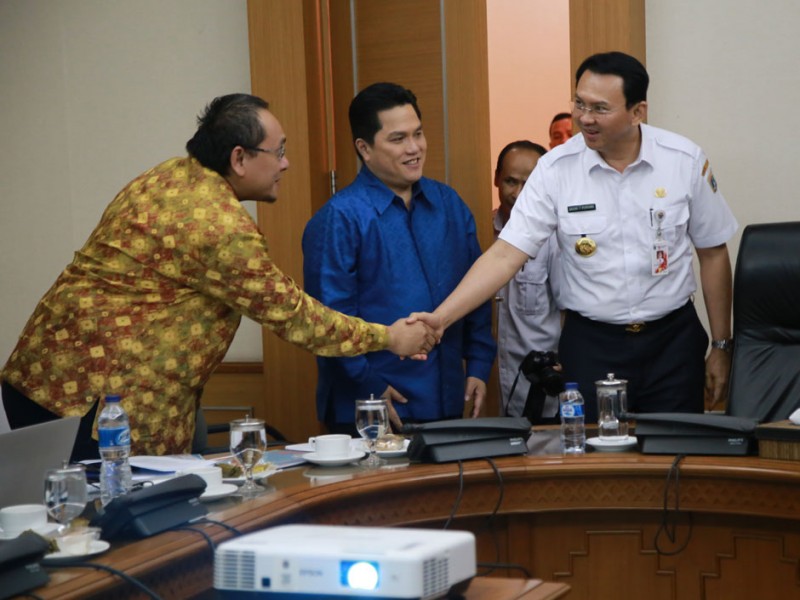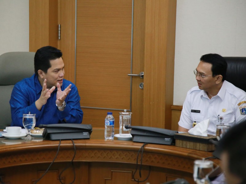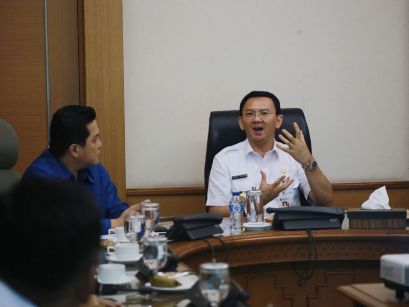 Ketua Komite Olimpiade Indonesia (KOI), Erick Thohir menemui Gubernur DKI Jakarta, Basuki Tjahaja Purnama di Balai Kota Jakarta, Rabu (14/9). Pertemuan ini guna membahas persiapan Asian Games 2018. Turut hadir dalam pertemuan Deputi Gubernur Bidang Budaya dan Pariwisata, Sylviana Murni. (Foto: Yopie/Beritajakarta.com)