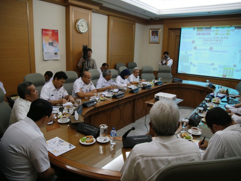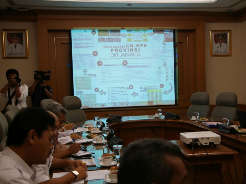 Balai Besar Wilayah Sungai Ciliwung Cisadane (BBWSCC), beserta Tim Gerakan Nasional Kemitraan Penyelamatan Air (GN-KPA) memaparkan pemanfaatan waduk, danau, embung dan daerah aliran sungai kepada Gubernur DKI Jakarta, Basuki Tjahaja Purnama di Balai Kota Jakarta, Rabu (14/9). (Foto: Yopie/Beritajakarta.com)