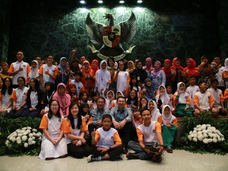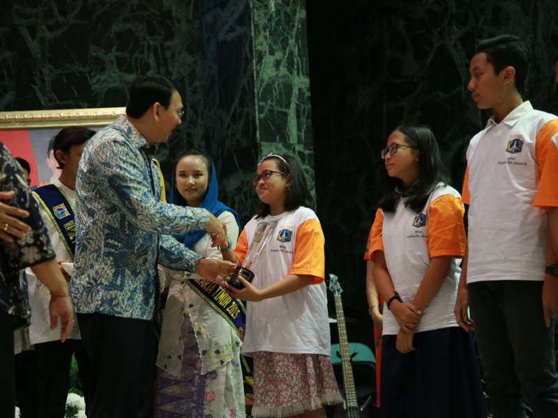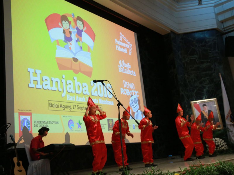 Gubernur DKI Jakarta, Basuki Tjahaja Purnama menghadiri acara puncak Hari Anak Jakarta Membaca (Hanjaba) Tahun 2016 di Balai Kota Jakarta, Sabtu (17/9/2016). Momen bertemu dengan dengan anak-anak ini digunakan Basuki untuk memberikan cerita mengenai lambang negara Indonesi yakni, Burung Garuda dan makna Pancasila agar bisa membangkitkan semangat nasionalisme sejak dini.(Foto: yopie /beritajakarta.com)