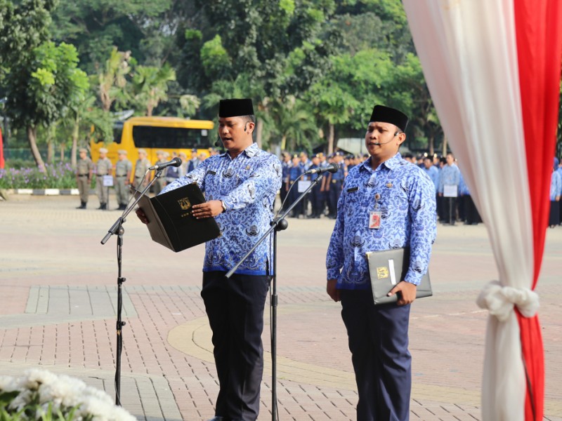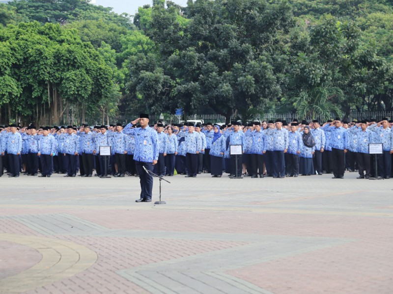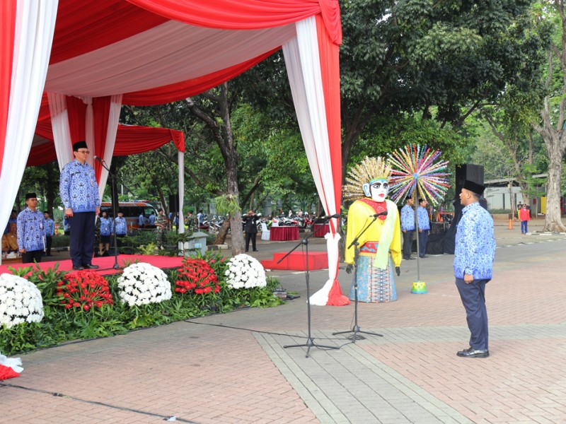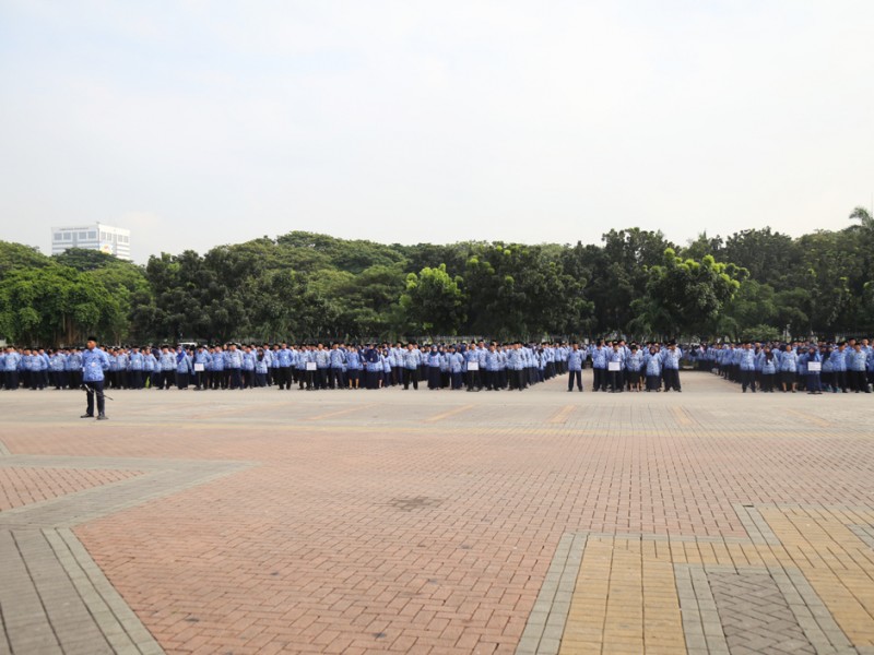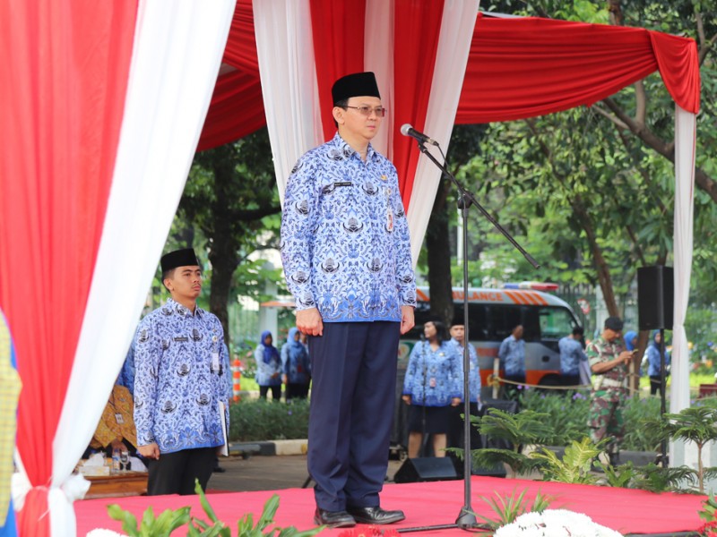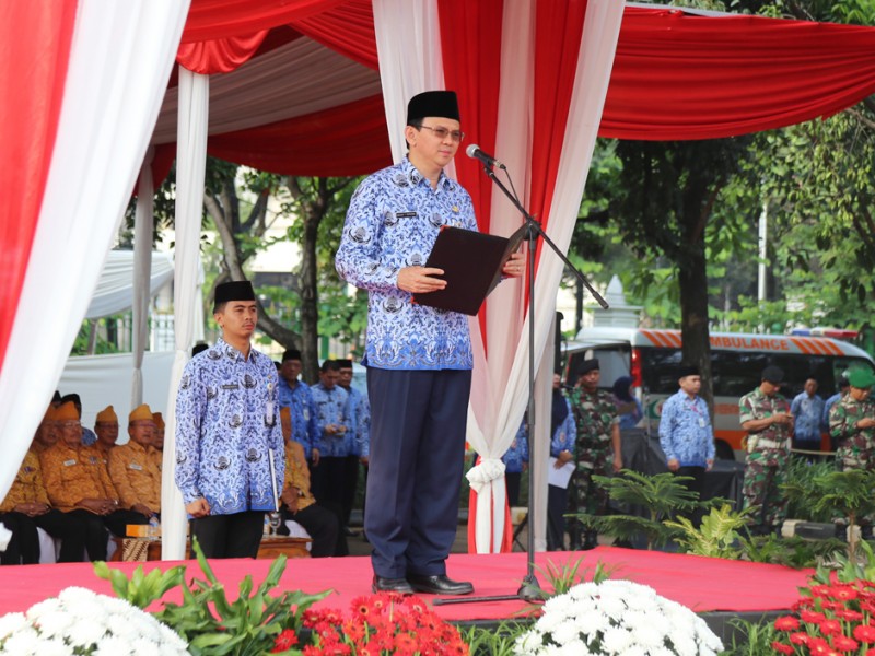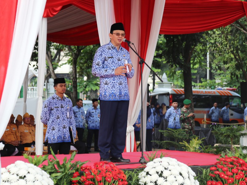Pemprov DKI Jakarta menggelar apel memperingati Rapat Raksasa Lapangan Ikatan Atletik Djakarta (Ikada) di Lapangan ex IRTI Monas, Gambir, Jakarta Pusat, Senin (19/9). Gubernur DKI Jakarta, Basuki Tjahaja Purnama bertindak sebagai inspektur upacara dalam peringatan ini. (Foto: Reza/beritajakarta.com)