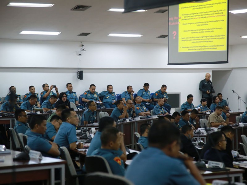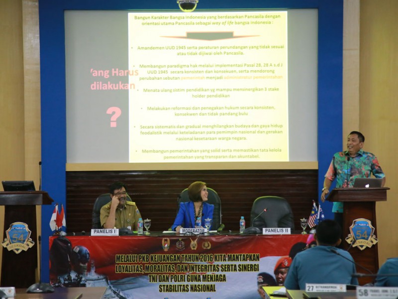 Wakil Gubernur DKI Jakarta, Djarot Saiful Hidayat menjadi pembicara dalam acara Diskusi Panel Kepemimpinan di Hall A Gedung RE. Martadinata Seskoal Jalan Ciledug Raya, Kelurahan Cipulir, Kecamatan Kebayoran Lama, Jakarta Selatan, Senin (19/9). Dalam acara diskusi ini Djarot membawa tema kepemimpinan nasional mewujudkan pemerintahan yang bersih dan berwibawa. (Foto: Yopie/Beritajakarta.com)