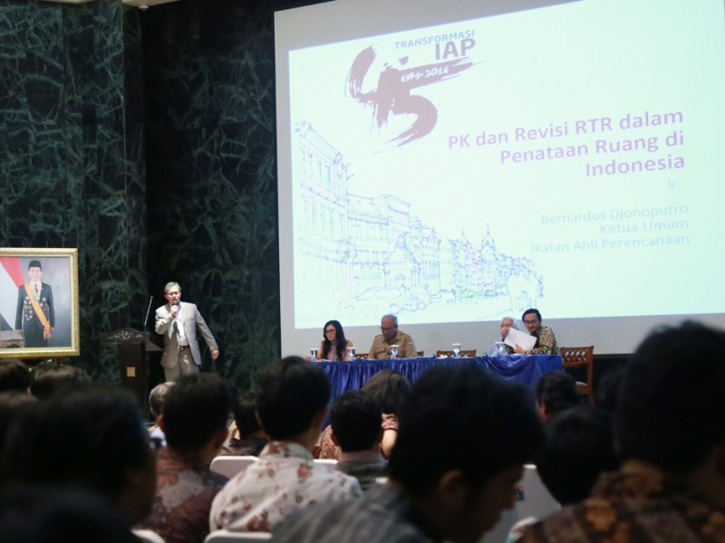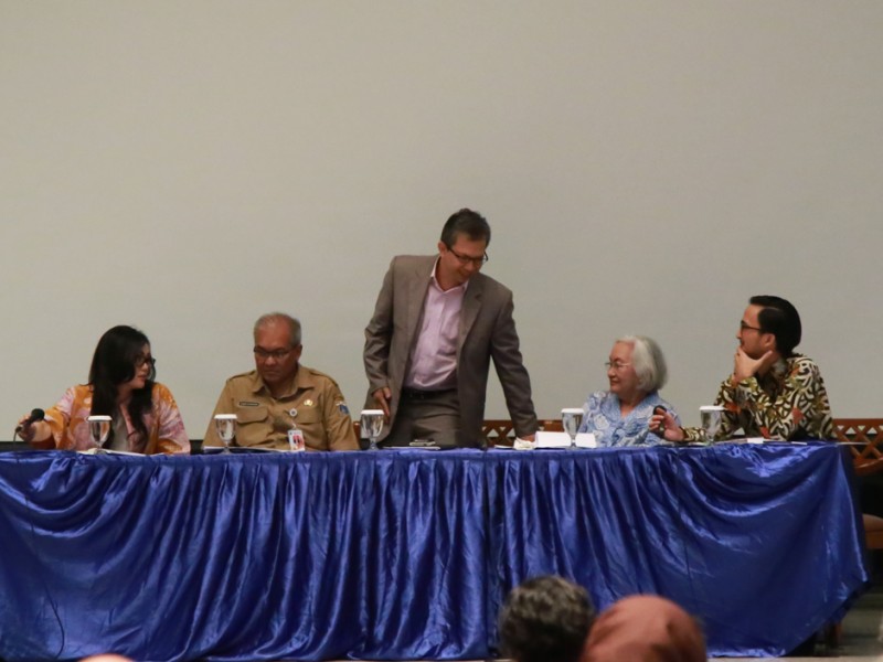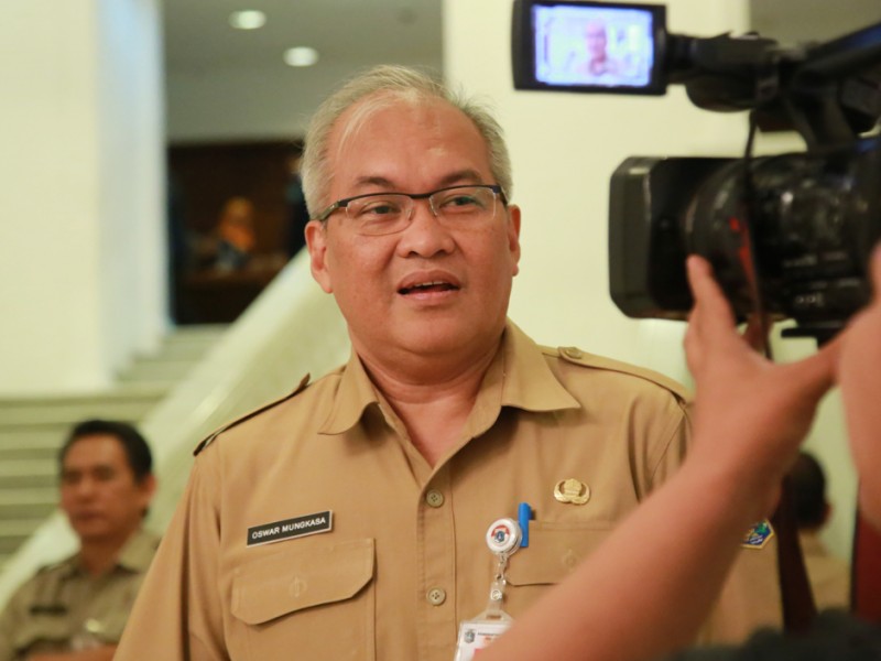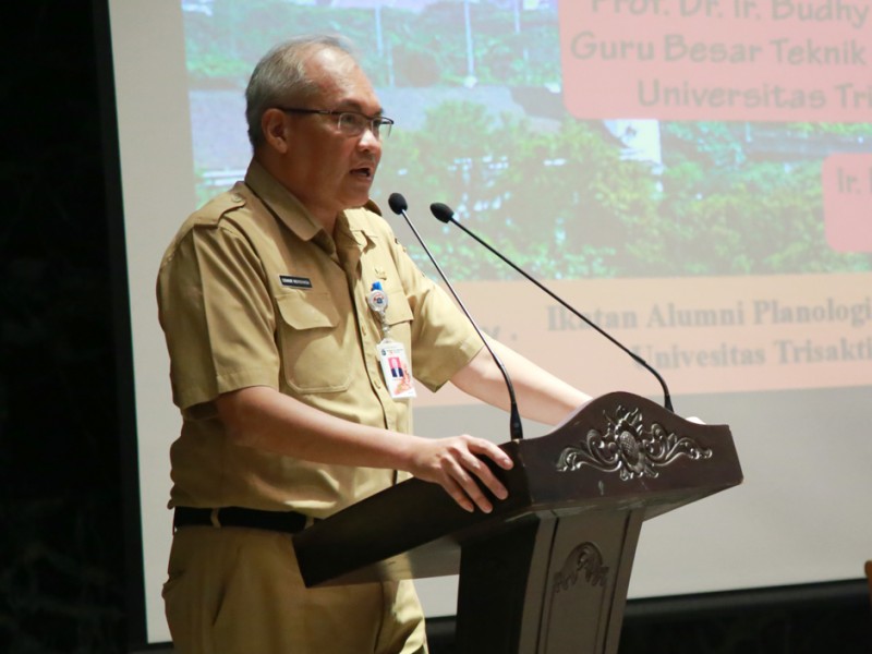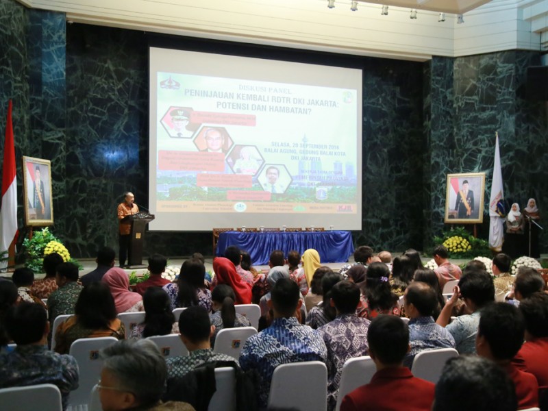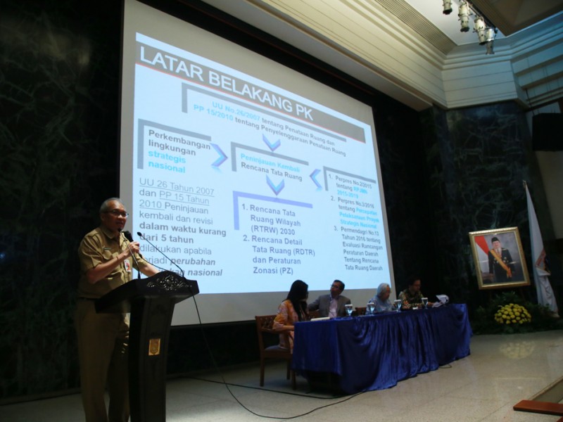 Deputi Gubernur Bidang Tata Ruang dan Lingkungan Hidup DKI Jakarta, Oswar Muadzin Mungkasa menjadi pembicara dalam diskusi panel peninjauan kembali Rencana Detail Tata Ruang (RDTR) di DKI Jakarta berserta potensi dan hambatanya di Balai Kota Jakarta, Selasa (20/9). (Foto: Yopie/beritajakarta.com)