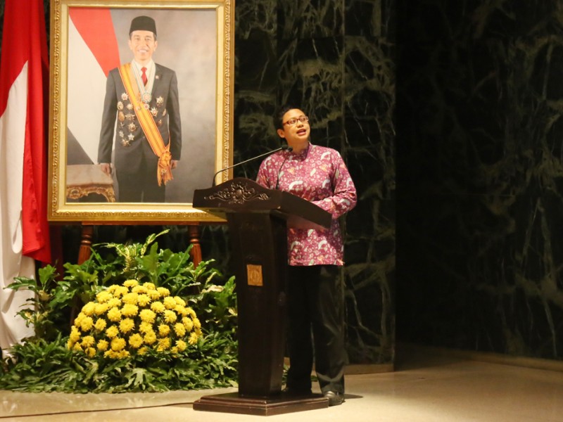 Asisten Bidang Kesejahteraan Masyarakat Sekretaris Daerah Provinsi DKI Jakarta, Fatahillah meluncuran aplikasi atau fitur pendukung di Jakarta Smart City dan mengukuhkan pasukan ungu pendukung gerakan melawan pikun di Balai Kota DKI Jakarta, Rabu (21/09). (Foto: Reza/beritajakarta.com)