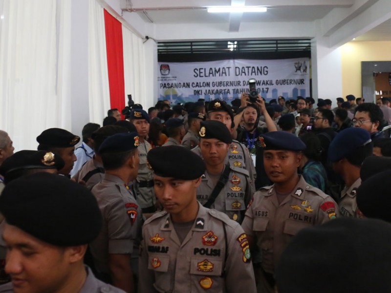 Komisi Pemilihan Umum (KPU) DKI Jakarta membuka pendaftaran pasangan calon gubernur (cagub) dan calon wakil gubernur (cawagub) DKI Jakarta Tahun 2017 di Gedung KPU DKI Jakarta, Jl Salemba Raya No 15, Jakarta Pusat, Rabu (21/9).(Foto: Reza/Beritajakarta.com)