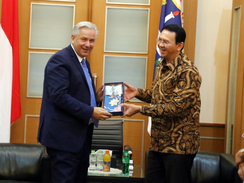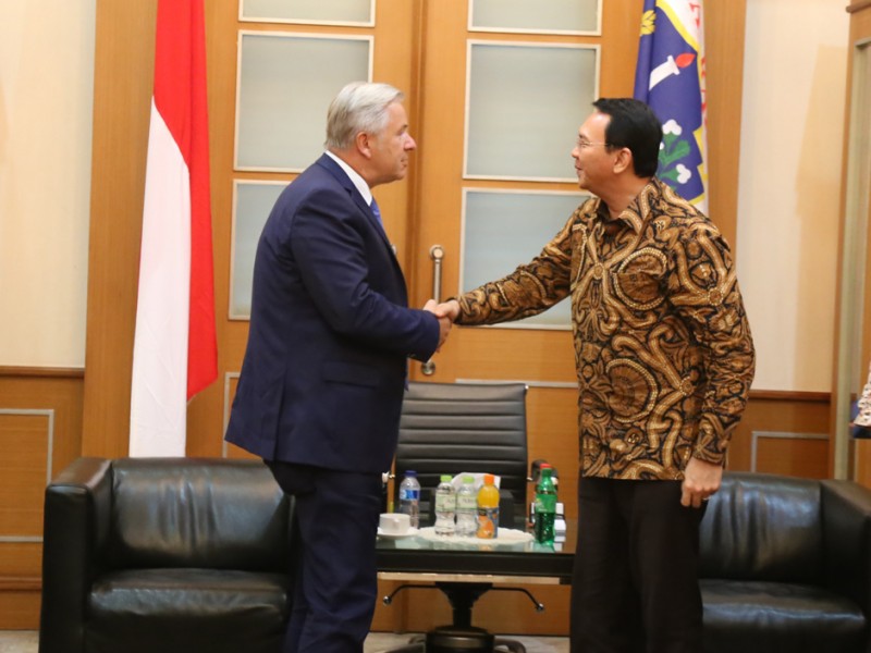 Gubernur DKI Jakarta, Basuki Tjahaja Purnama bersama mantan Wali Kota Berlin periode (2001 - 2014) Klaus Wowereit, mendiskusikan pembangunan perkotaan di Balai Kota DKI Jakarta, Jumat (23/9). (Foto: Reza/beritajakarta.com)