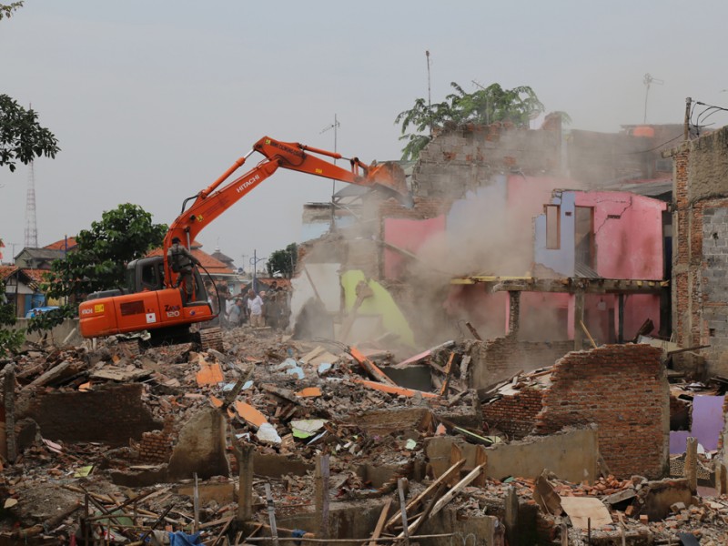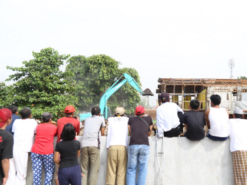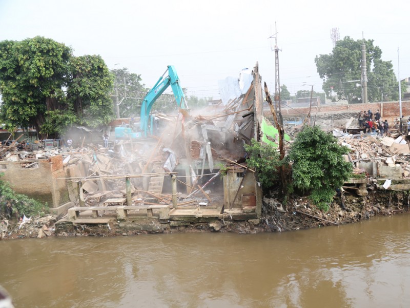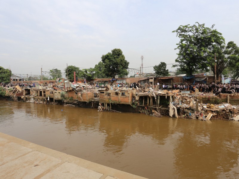 Pemerintah Kota Administrasi Jakarta Selatan menertibkan 363 bidang di bantaran Kali Ciliwung, Bukit Duri, Tebet, Jakarta Selatan, Rabu (27/9/). 4 unit alat berat dikerahkan dalam penertiban tersebut. Penertiban ini terkait normalisasi Kali Ciliwung untuk mengatasi banjir di Jakarta. (Foto: Reza/Beritajakarta.com)