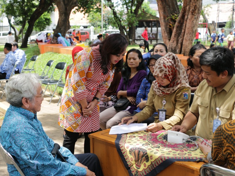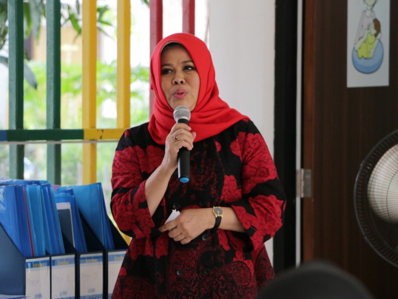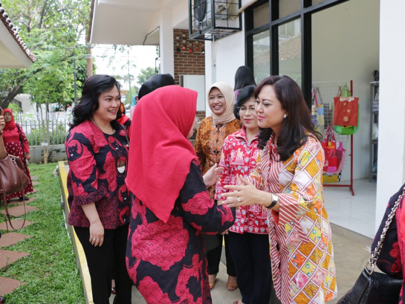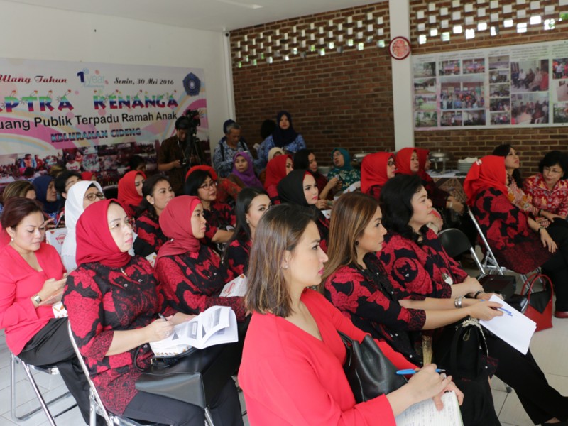 Wakil Ketua I Tim Pengerak Pemberdayaan Kesejahteraan Keluarga (TP PKK) Provinsi DKI Jakarta, Happy Farida Hidayat mendampingi Persaudaraan Istri Anggota DPR RI mengunjungi Ruang Publik Terpadu Ramah Anak (RPTRA) Kenanga di Jalan Obira, Cideng, Jakarta Pusat, Senin (3/10/2016). Selain melihat langsung taman ramah anak ini, kunjungan dilakukan untuk mengetahui peran serta anggota PKK setepat di RPTRA. (Foto: Yopie/beritajakarta.com)