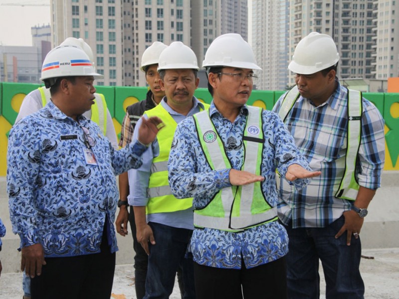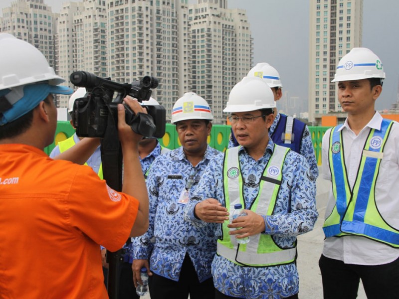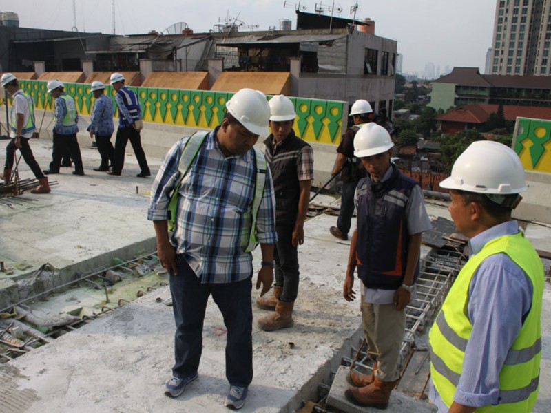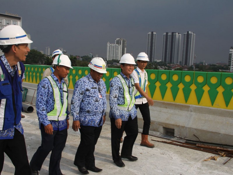 Kepala Dinas Bina Marga DKI Jakarta, Yusmada Faizal meninjau proyek pembangunan Jalan Layang Non Tol (JLNT) khusus bus Transjakarta Koridor XIII Tendean-Ciledug, Senin (3/10/2016). Peninjauan dilakukan di titik pengerjaan kawasan Kebayoran Lama, Jakarta Selatan.(Foto: Yopie/beritajakarta.com)