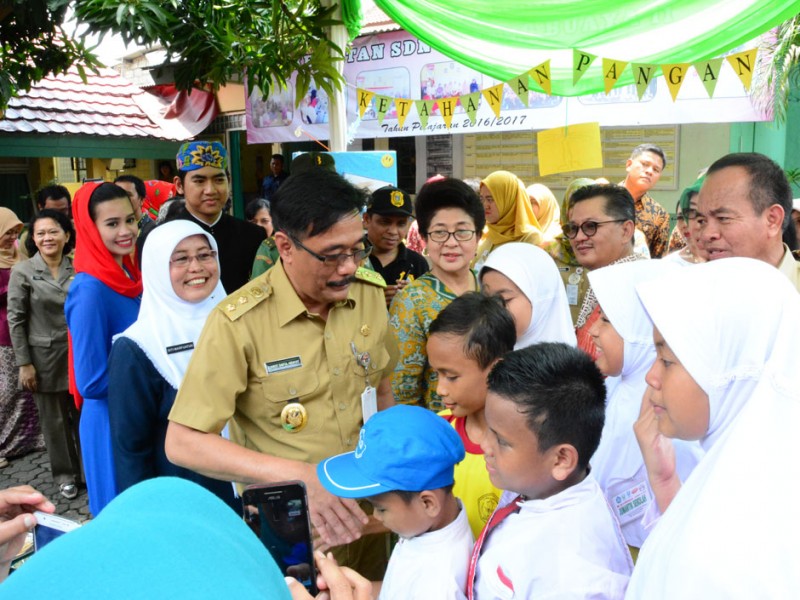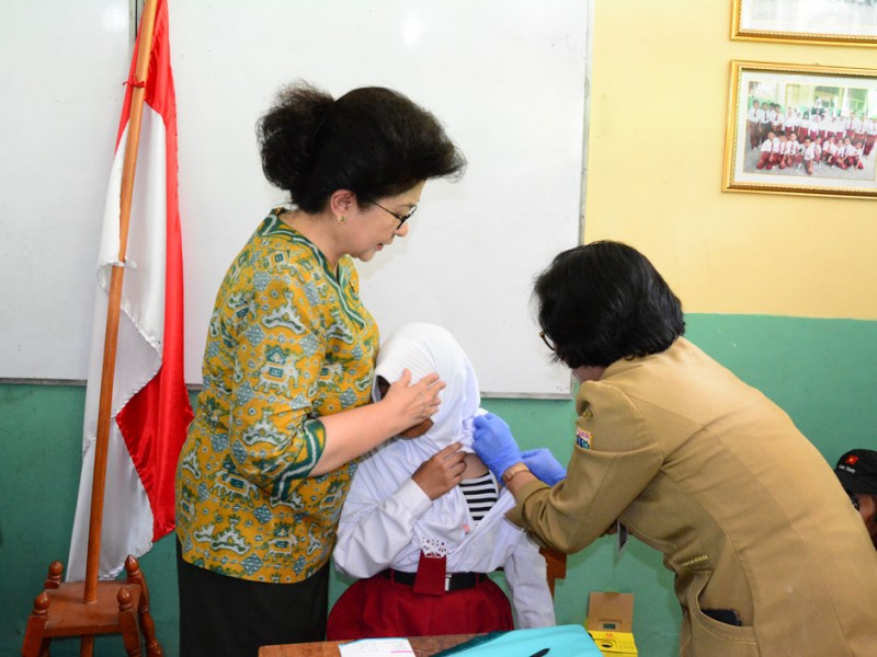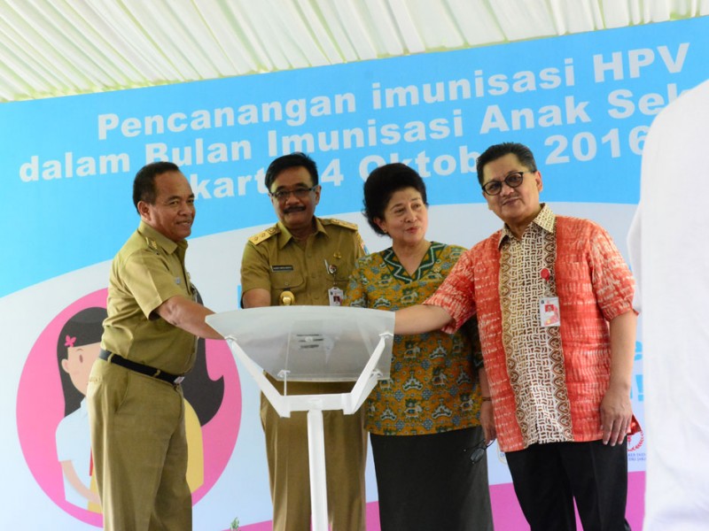 Wakil Gubernur DKI Jakarta, Djarot Saiful Hidayat menghadiri kegiatan pencegahan kanker serviks melalui imunisasi Human Pamilloma virus (HPV) 2016 dalam bulan imunisasi di SD Negeri Lubang Buaya 11 Pagi Jalan Albaido, Jakarta Timur, Selasa (04/10). Dalam acara ini hadir Menteri Kesehatan RI, Nila Farid Moeloek, Kepala Dinas Kesehatan DKI Jakarta, Koesmedi Priharto dan Wali Kota Jakarta Timur, Bambang Musyawardana.(Foto: humas Rusmadi|Reza beritajakarta.com)
