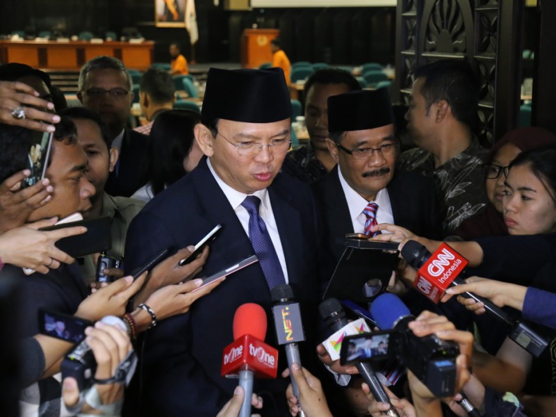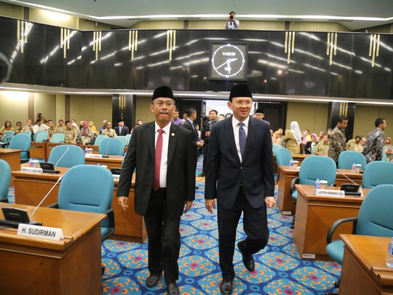 Gubernur DKI Jakarta, Basuki Tjahaja Purnama bersama Wakil Gubernur DKI Jakarta, Djarot Saiful Hidayat menghadiri rapat Paripurna DPRD Provinsi DKI Jakarta, di Gedung DPRD DKI Jakarta, Jalan Kebon Sirih, Gambir, Jakarta Pusat, Selasa (4/10). Rapat Paripurna beragendakan Pidato Gubernur mengenai Penyampaian Raperda Tentang Perubahan APBD Provinsi DKI Jakarta Tahun Anggaran 2016. (Foto: Reza/beritajakarta.com)