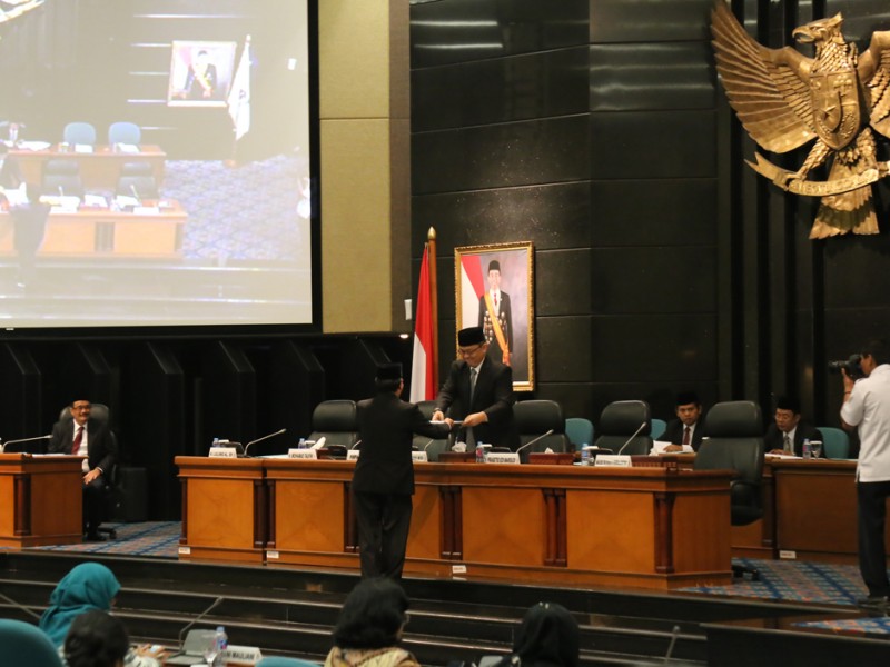 Wakil Gubernur DKI Jakarta, Djarot Saiful Hidayat menghadiri Rapat Paripurna di Gedung DPRD Provinsi DKI Jakarta, Jalan Kebon Sirih, Gambir, Jakarta Pusat, Rabu (05/10). Rapat Paripurna kali ini beragendakan Penyampaian Pemandangan Umum Fraksi-fraksi terhadap Raperda tentang Perubahan APBD Provinsi DKI Jakarta Tahun Anggaran 2016. (Foto: Reza/Beritajakarta.com)