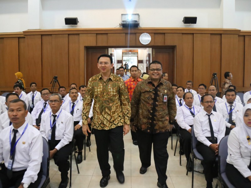 Gubernur DKI Jakarta, Basuki Tjahaja Purnama menutup Diklat Kepemimpinan Tingkat III dan IV dan Diklat Prajabatan Golongan II dan III Reguler dan K1/K2 Tahun 2016 di di Ruang Serba Guna Lantai 2 Gedung Teknis Jalan Abdul Muis, Jakarta Pusat, Jumat (7/10). (Foto: Reza/beritajakarta.com)