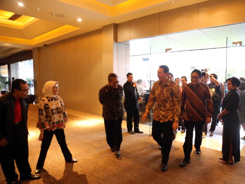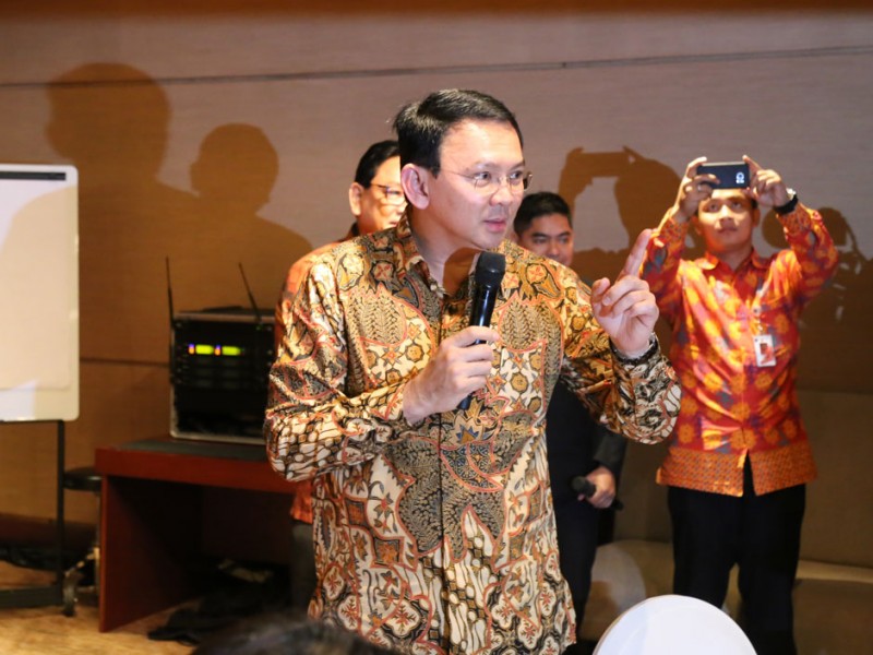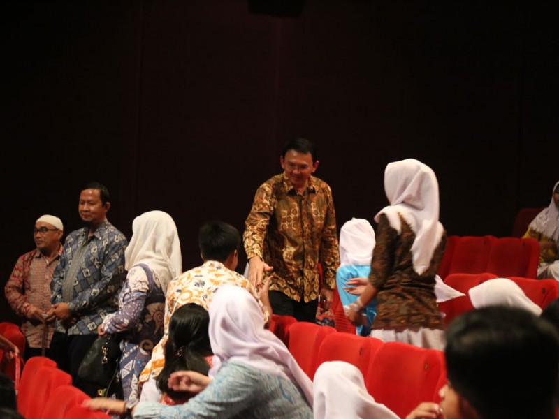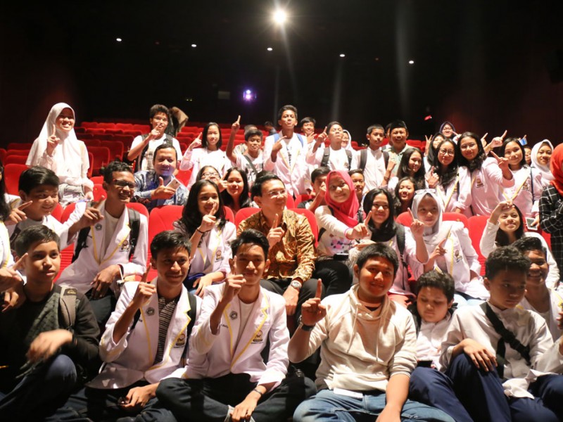 Gubernur DKI Jakarta, Basuki Tjahaja Purnama mengajak ratusan siswa nonton bareng (nobar) film berjudul Guru Bangsa Tjokroaminoto bersama para siswa SMP dari berbagai wilayah di Ibukota di Djakarta Theater, Jalan M.H Thamrin, Menteng, Jakarta Pusat, Jumat (7/10).