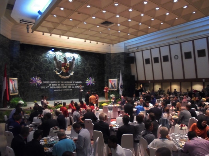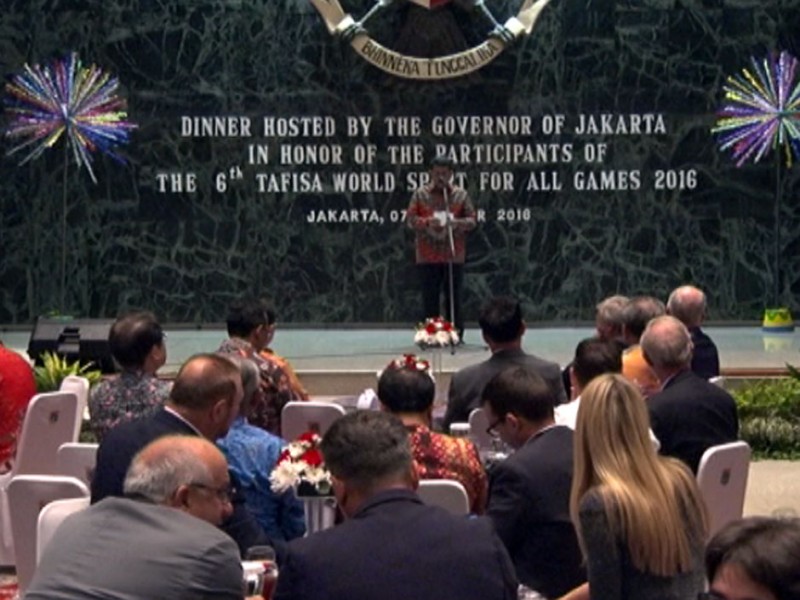 Sejumlah delegasi The Association For International Sport for All (Tafisa) World Games 2016, menghadiri acara Jamuan Makan Malam di Balai Kota DKI Jakarta, Jumat (07/10/2016). Adapun penyelenggaraan Tafisa World Games 2016 yang digelar di Jakarta berlangsung mulai 6 sampai dengan 12 Oktober 2016.(Foto: Reza/beritajakarta.com)
