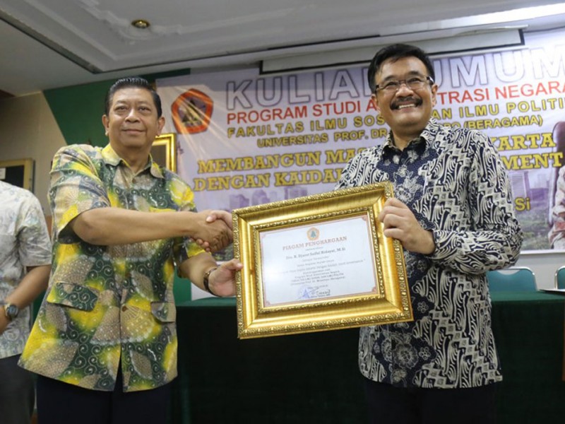 Wakil Gubernur DKI Jakarta, Djarot Saiful Hidayat menjadi dosen tamu dalam Kuliah Umum dengan Tema ``Membangun Jakarta Masa Depan dengan Kaidah Good Government`` di Universitas Prof.Dr.Moestopo (Beragama), Jakarta Pusat, Sabtu, (8/10). (Foto: Reza/Beritajakarta.com)
