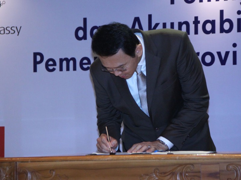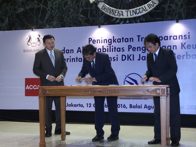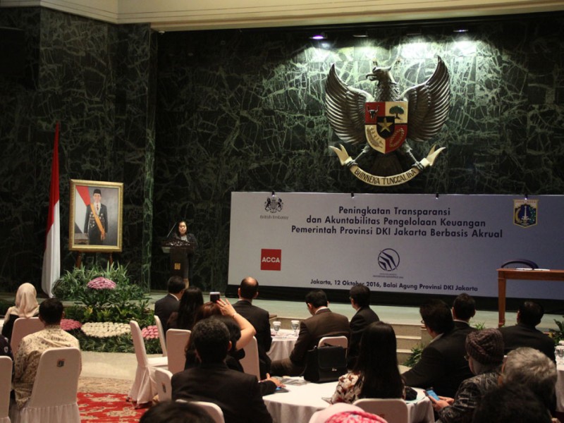Gubernur DKI Jakarta, Basuki Tjahaja Purnama memberikan sambutan dan membuka kick off meeting Pelatihan Peningkatan Transparansi dan Akuntabilitas Pengelolaan Keuangan Pemprov DKI Jakarta Berbasis Akrual di Balai Kota Jakarta, Rabu (12/10). Dalam pelatihan ini Pemerintah Provinsi DKI Jakarta menggandeng tiga instansi yakni Badan Pengawasan Keuangan dan Pembangunan (BPKP), PT Dirgantara Indonesia serta Association of Chartered Certified Accountants (ACCA).(Foto: Yopie/beritajakarta.com)