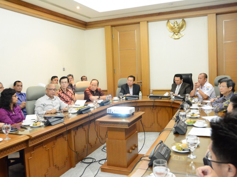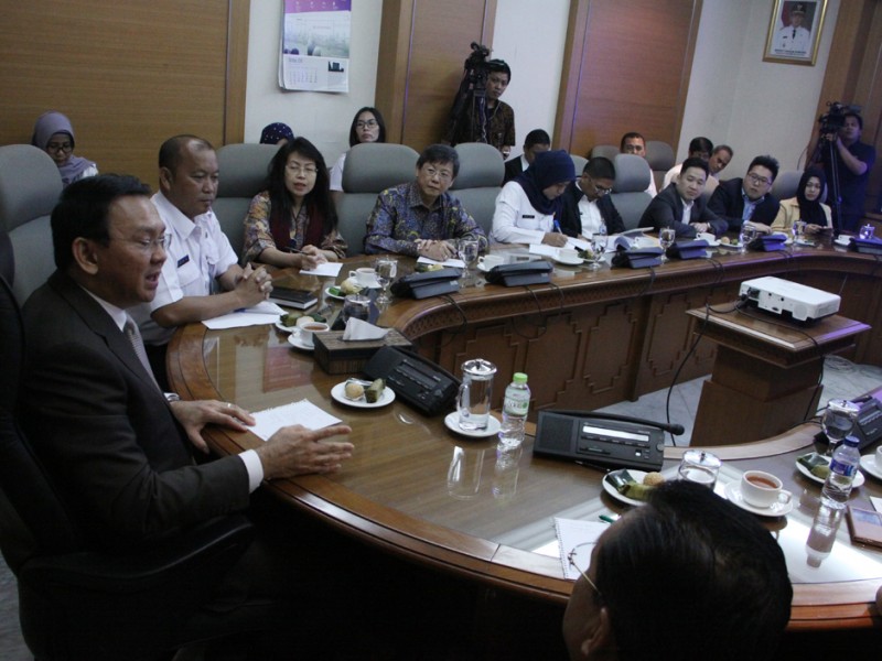Gubernur DKI Jakarta Basuki Tjahaja Purnama mengadakan rapat lanjutan terkait rencana revitalisasi air mancur Tugu Selamat Datang di Bundaran Hotel Indonesia bersama Dinas Pertamanan dan Pemakaman DKI Jakarta di Balai Kota Jakarta, Rabu (12/10). Rapat lanjutan ini membahas waktu pelaksanaan serta target penyelesaian dari revitalisasi air mancur. (Foto: Yopie/beritajakarta.com)