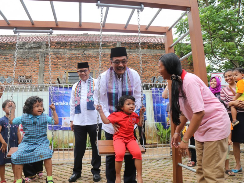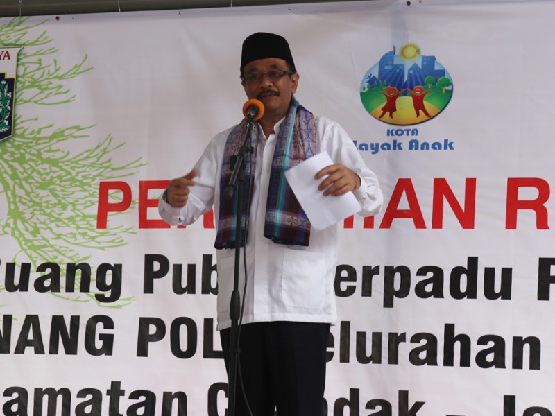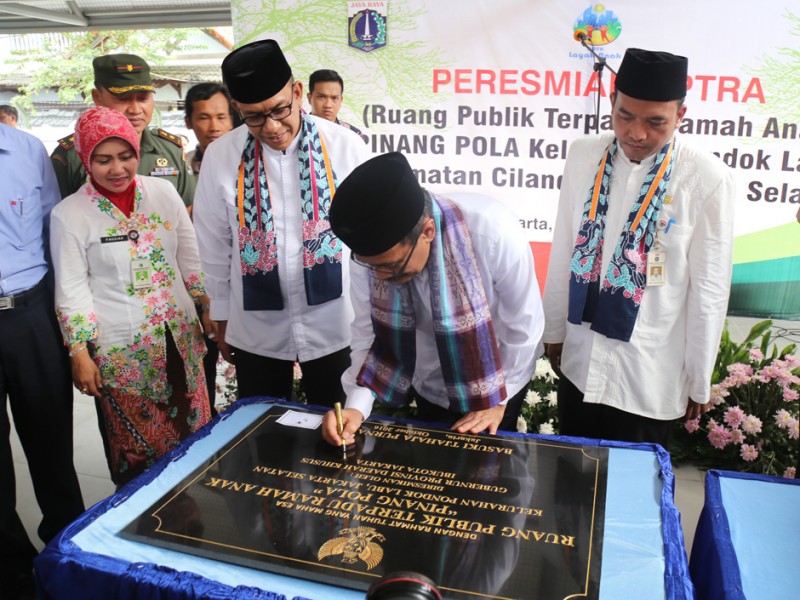 Wakil Gubernur DKI Jakarta Djarot Saiful Hidayat meresmikan Ruang Publik Terpadu Ramah Anak (RPTRA) Pinang Pola di Jalan Pinang 2, Kelurahan Pondok Labu, Kecamatan Cilandak, Jakarta Selatan, Kamis (13/10). RPTRA ini terintergrasi dengan hutan kota Pondok Labu karena letaknya didepan hutan kota. (Foto: Reza/beritajakarta.com)