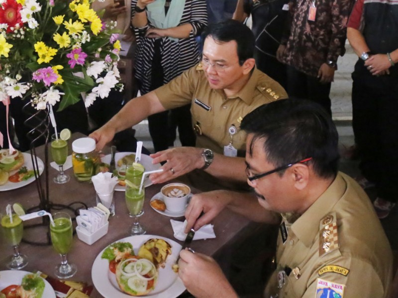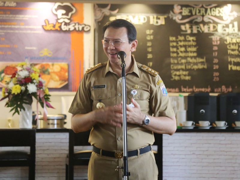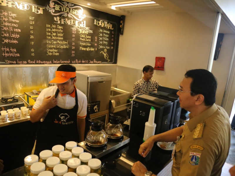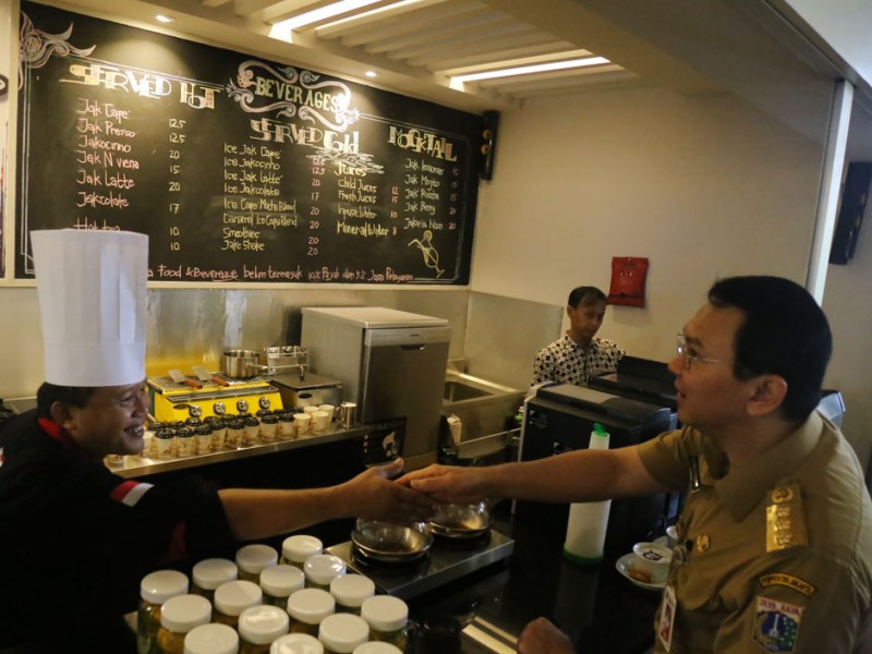 Gubernur DKI Jakarta, Basuki Tjahaja Purnama meresmikan outlet JakBistro pertama di Balai Kota, Senin (17/10). Outlet yang menyediakan berbagai aneka manakanan dan minuman ini merupakan milik salah satu BUMD DKI yakni Jakarta Tourisindo. (Foto: Reza/Beritajakarta.com)