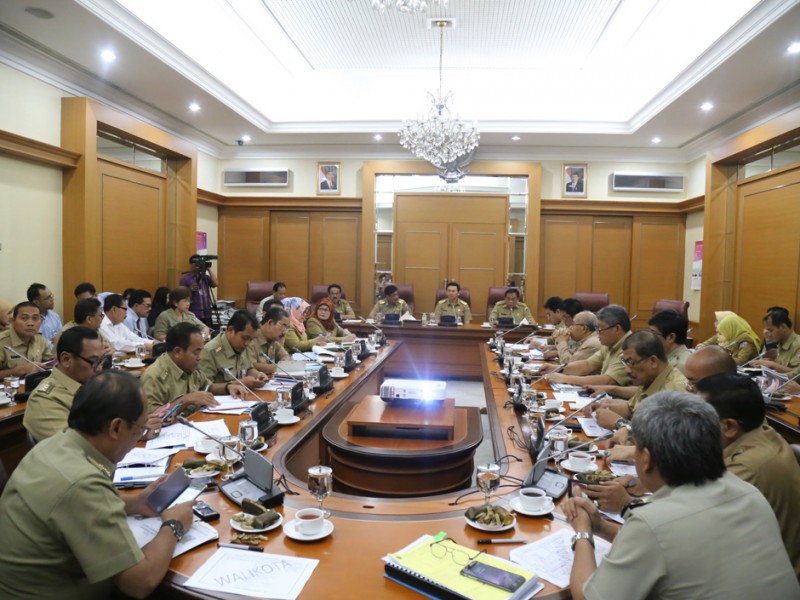 Pemprov DKI Jakarta membahas pencegahan Banjir luapan Kali Krukut dalam Rapat Pimpinan (Rapim) bersama Gubernur DKI Jakarta, Basuki Tjahaja Purnama dan Wakil Gubernur DKI Jakarta, Djarot Saiful Hidayat serta jajaran Satuan Kerja Perangkat Daerah (SKPD) di Balai Kota DKI Jakarta, Senin (17/10). (Foto: Reza/beritajakarta.com)