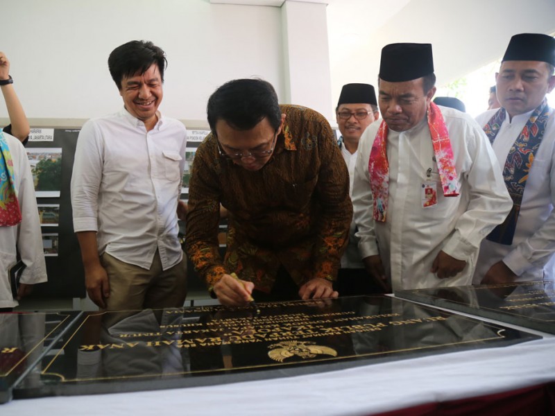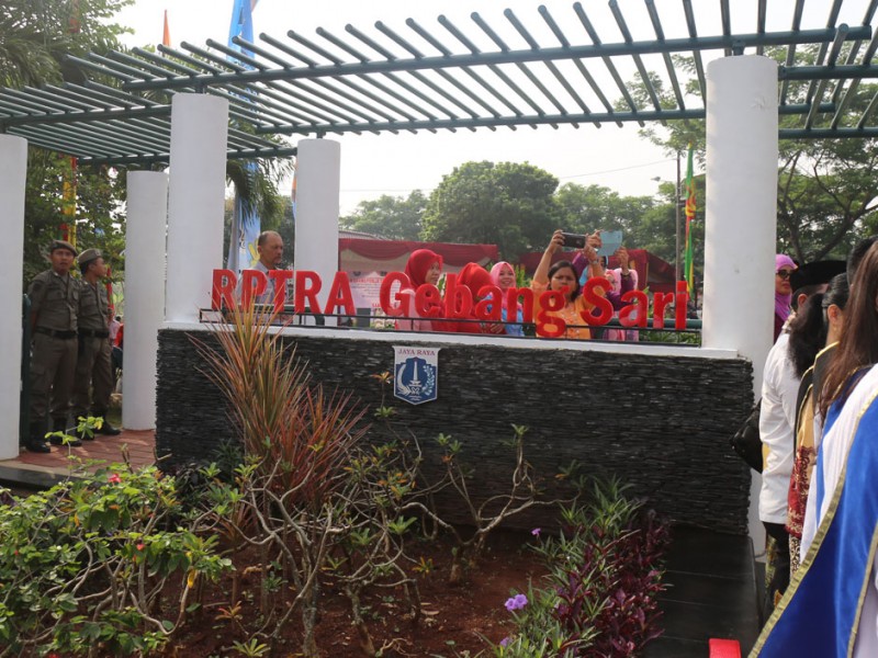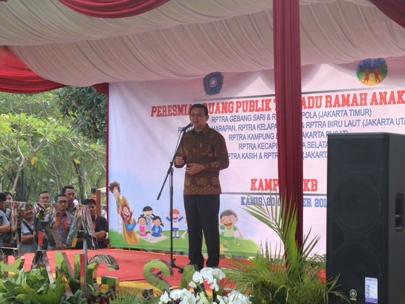 Gubernur DKI Jakarta, Basuki Tjahaja Purnama, meresmikan sembilan Ruang Publik Terpadu Ramah Anak (RPTRA) di lima wilayah Ibukota, Kamis (20/10). Peresmian RPTRA dipusatkan di RPTRA Gebang Sari, Bambu Apus, Cipayung, Jakarta Timur. Ke sembilan RPTRA yang diresmikan ini yakni RPTRA Gebang Sari dan RPTRA Ikapola yang berada di Jakarta Timur. Kemudian RPTRA Tunas Harapan, Kelapa Nias IX dan RPTRA Biru Laut yang berada di Jakarta Utara, RPTRA Kampung Benda Jakarta Pusat, RPTRA Kecapi Jakarta Selatan dan RPTRA Kasih serta RPTRA Ceria di Jakarta Barat. (Foto: Reza/Beritajakarta.com)