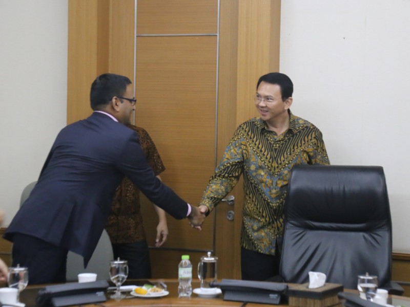 Gubernur DKI Jakarta, Basuki Tjahaja Purnama menerima tim PT Microsoft Indonesia di Balai Kota DKI Jakarta, Kamis (20/10). Pertemuan ini perihal pengembangan program di Badan Pelayanan Terpadu Satu Pintu (BPTSP). (Foto: Reza/Beritajakarta.com)