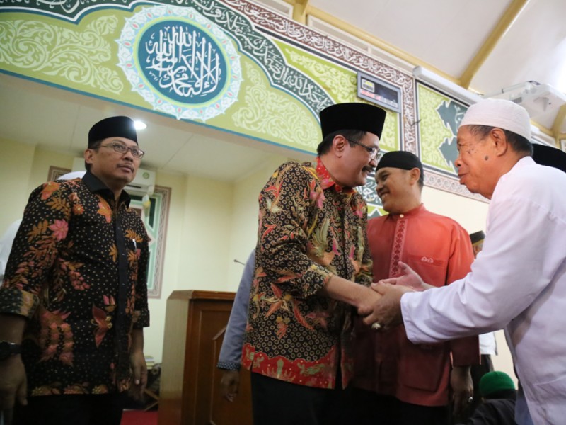 Wakil Gubernur DKI Jakarta, Djarot Saiful Hidayat menggelar safari sholat Jumat, di Masjid Nurul Amal, Jalan AUP Rawa Minyak Pasar Minggu, Jakarta Selatan, Jumat (21/10). Dalam kesempatan ini Djarot juga meninjau lokasi pembangunan Waduk Rawa Minyak dengan lahan seluas 1,2 hektare yang mengalami keterlambatan dalam pengerjaanya. (Foto: Yopie/beritajakarta.com)
