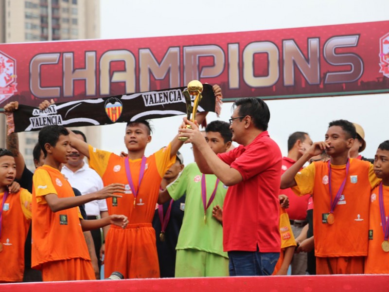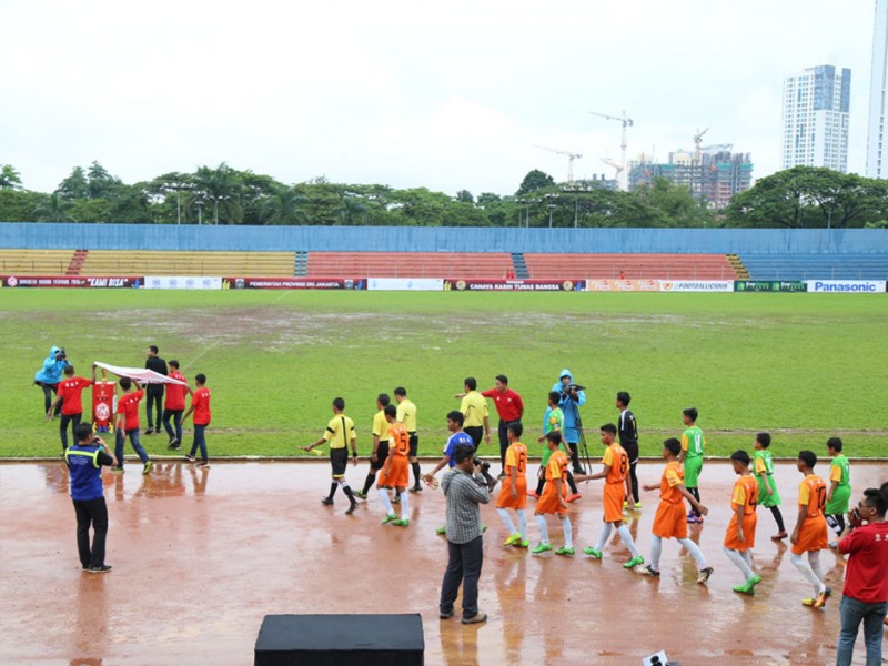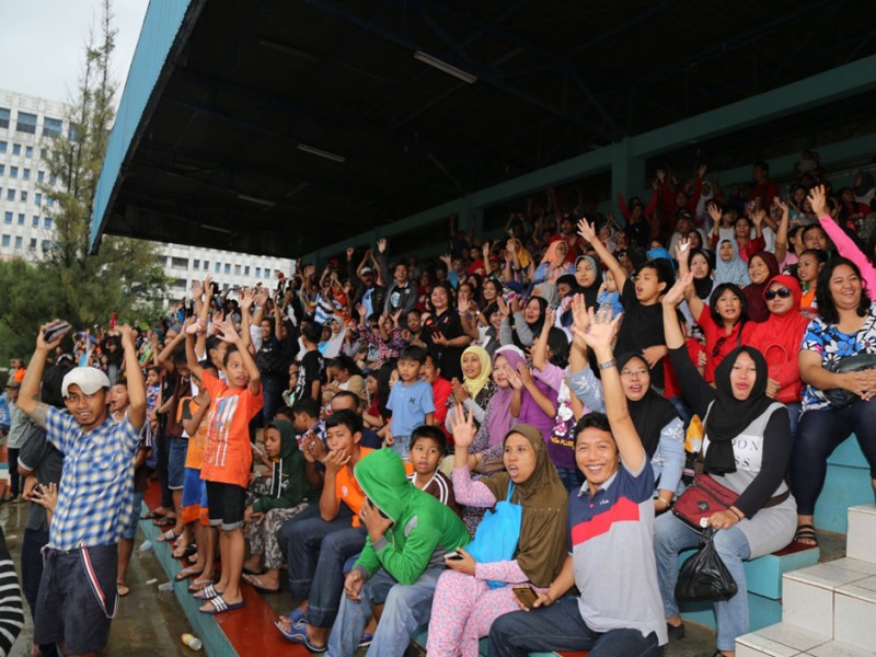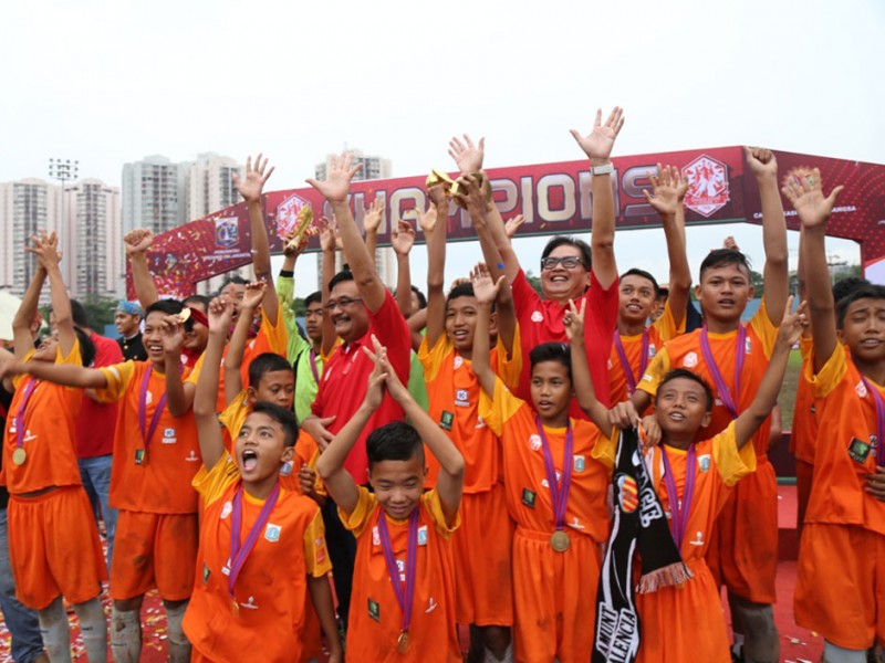 Wakil Gubernur DKI Jakarta, Djarot Saiful Hidayat menyerahkan piala dan medali kepada tim sepak bola Rusun Daan Mogot di GOR Soemantri Brodjonegoro, Kuningan, Jakarta Selatan, Minggu (23/10/2016). Kesebelasan sepak bola Rusun Daan Mogot berhasil menjadi juara pertama dalam kompetisi sepak bola antar rumah susun (Rusun) se-DKI Jakarta bertajuk Jakarta Rusun Festival 2016. Sebagai pemenang, nantinya anak-anak dari Rusun Daan Mogot ini berhak mengikuti pelatihan di Spanyol. (Foto: Yopie/Beritajakarta.com)