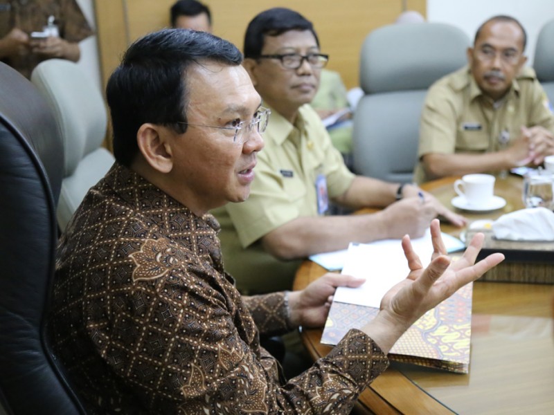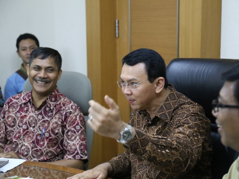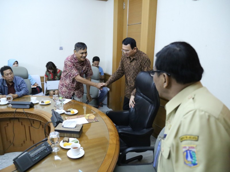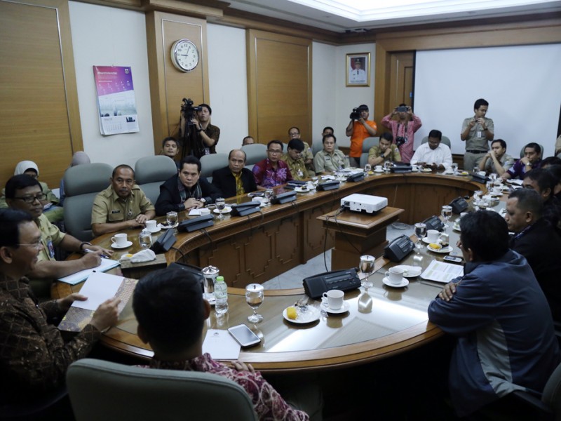 Dewan Pengupahan Provinsi DKI Jakarta membahas upaya penetapan Upah Minimum Provinsi (UMP) bersama Gubernur DKI Jakarta, Basuki Tjahaja Purnama di Balai Kota Jakarta, Senin (24/10). Turut hadir dalam pertemuan Kepala Dinas Tenaga Kerja dan Transmigrasi (Disnakertrans) DKI Jakarta, Priyono. (Foto: Yopie/Beritajakarta.com)