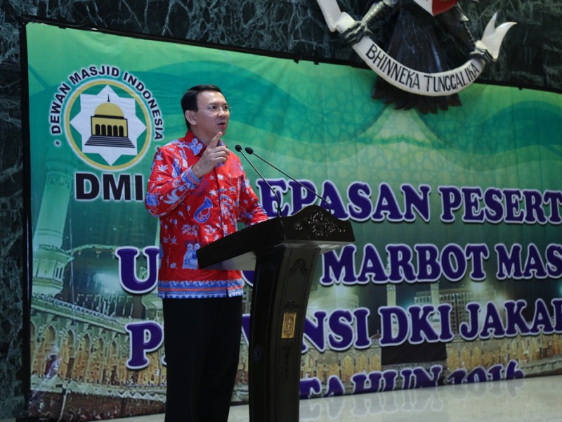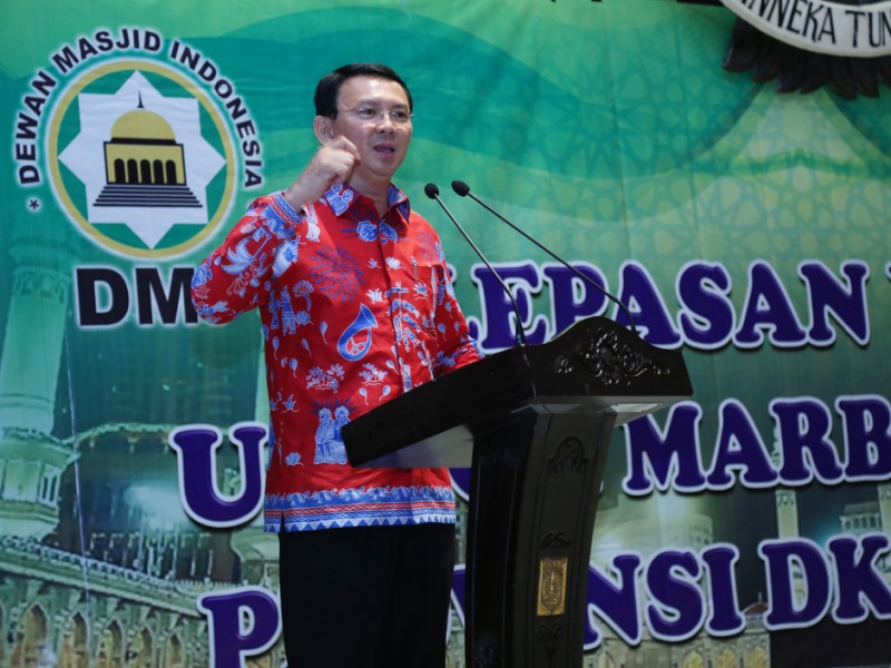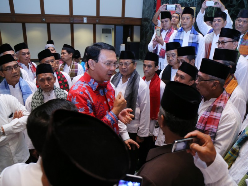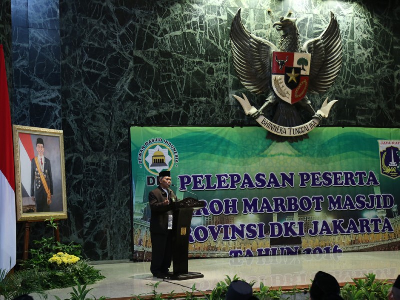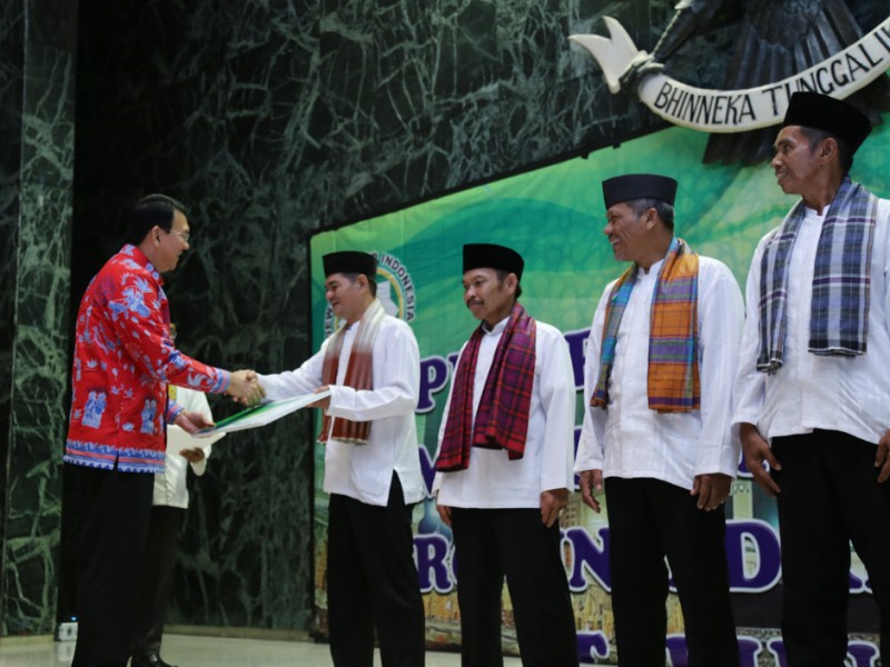 Pemerintah Provinsi DKI Jakarta kembali memberangkatkan marbut atau penjaga masjid untuk melaksanakan ibadah umrah. Pelepasan 50 marbut ini dilakukan Gubernur DKI Jakarta, Basuki Tjahaja Purnama di Balai Kota DKI Jakarta, Kamis (27/10/2016). (Yopie/beritajakarta.com)