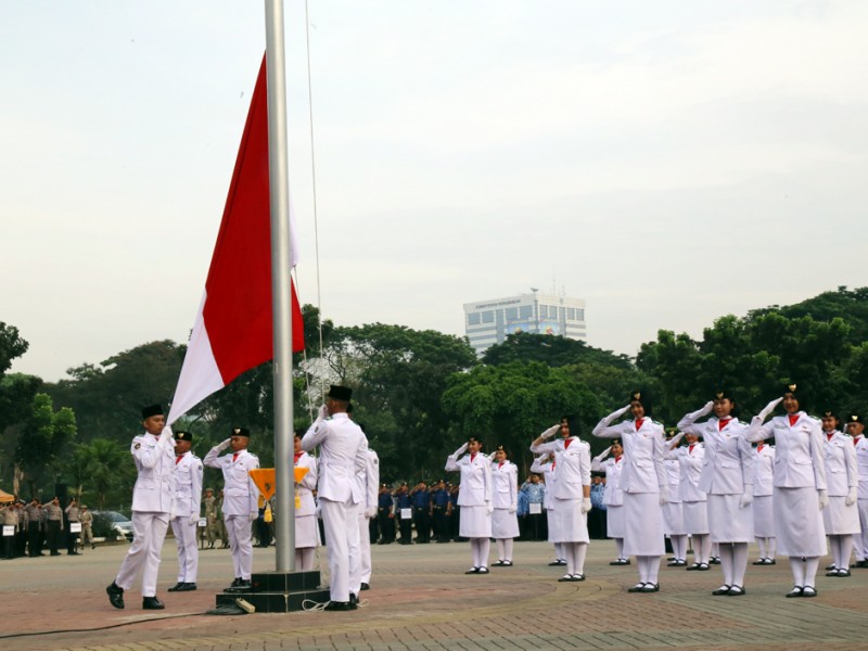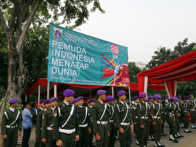 Pelaksana Tugas (Plt) Gubernur DKI Jakarta, Sumarsono menjadi Inspektur Upacara (Irup) apel peringatan Hari Sumpah Pemuda di Lapangan IRTI Monas, Jakarta Pusat, Jumat (28/10). Dalam kesempatan tersebut Sumarsono menyampaikan 3 pesan penting kepada Pegawai Negeri Sipil (PNS) DKI Jakarta. (Foto: Yopie/beritajakarta.com)