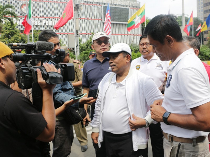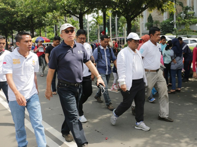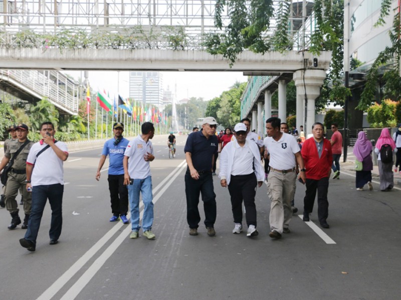 Pelaksana Tugas (Plt) Gubernur DKI Jakarta, Sumarsono melakukan peninjauan di sejumlah tempat di kawasan hari bebas kendaraan bermotor (HBKB) dan kawasan Monumen Nasional (Monas), Jakarta Pusat, Minggu (30/10). (Foto: Reza/beritajakarta.com)