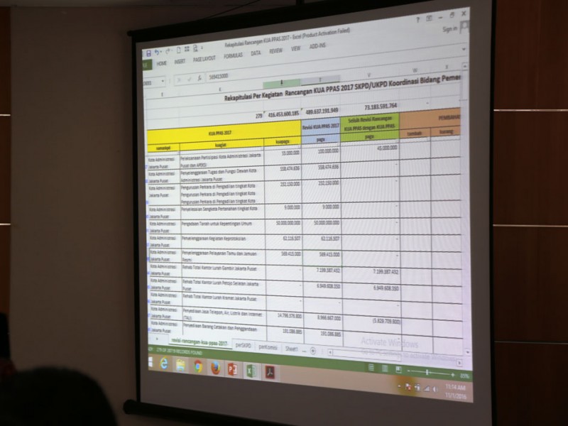 Komisi A Dewan Perwakilan Rakyat Daerah (DPRD) Provinsi DKI Jakarta bersama jajaran Pemerintah Provinsi DKI Jakarta menggelar rapat Pembahasan dan Pendalaman terhadap Rancangan Kebijakan Umum APBD (KUA) serta Prioritas dan Plafon Anggaran Sementara (PPAS) APBD Provinsi DKI Jakarta Tahun Anggaran 2017 di Gedung DPRD DKI Jakarta, Jalan Kebon Sirih, Gambir, Jakarta Pusat, Selasa (1/11). Adapun fokus utama rapat kali ini yakni terkait usulan anggaran sebesar Rp 50 miliar dari setiap kota administrasi untuk pembebasan lahan pembangunan ruang publik terpadau ramah anak (RPTRA).(Foto: Yopie/beritajakarta.com)