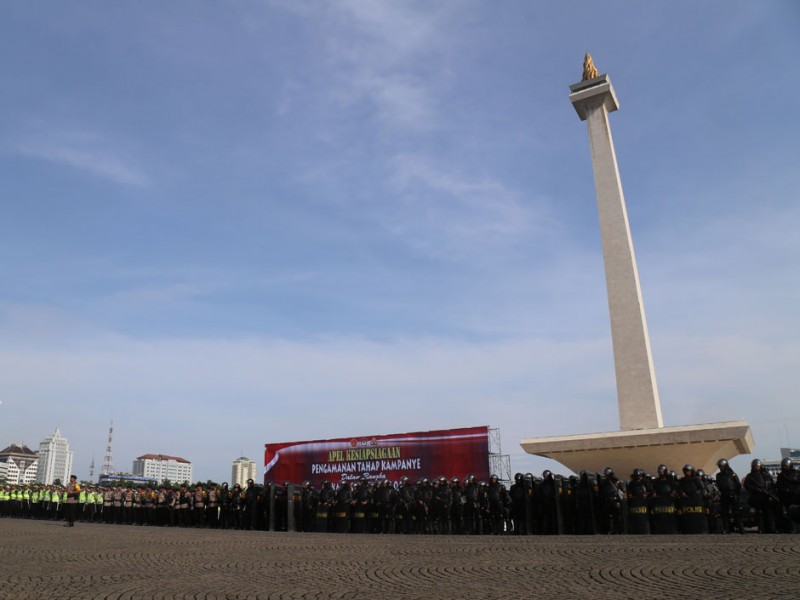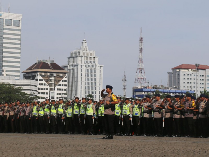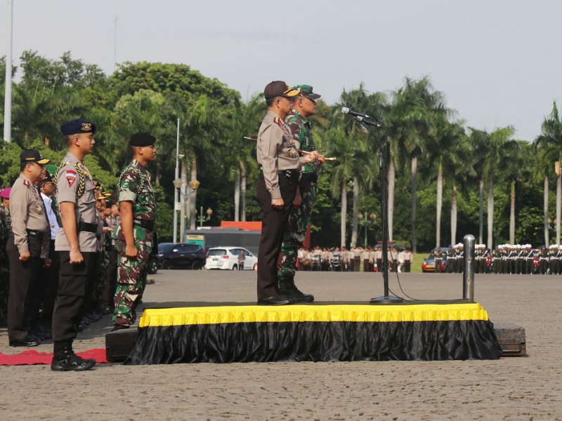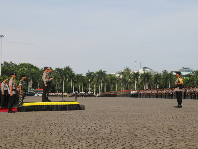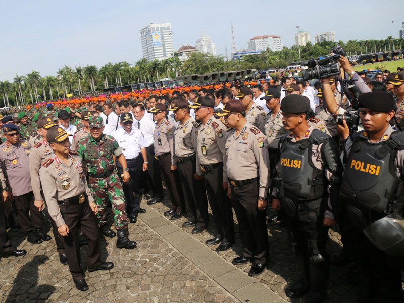 Sebanyak 4.000 Personel gabungan TNI, Polri dan Satpol PP menggelar apel siaga pengamanan Pemilihan Kepala Daerah (Pilkada) serentak 2017 di Silang Monas, Jakarta Pusat, Rabu (2/11/2016). Apel siaga untuk mengecek kesiapan pasukan pengamanan Pilkada serentak 2017 ini dipimpin langsung Kapolri Jenderal Tito Karnavian dan Panglima TNI, Jendral Gatot Nurmantio, dan dihadiri oleh Pelaksana Tugas (Plt) Gubernur DKI Jakarta, Sumarsono; Kapolda Metro Jaya, Irjen Pol M Iriawan; Pangdam Jaya, Mayjen TNI Teddy Laksmana; serta Ketua DPRD DKI Jakarta, Prasetio Edi Marsudi. (Foto: Reza/Beritajakarta.com)