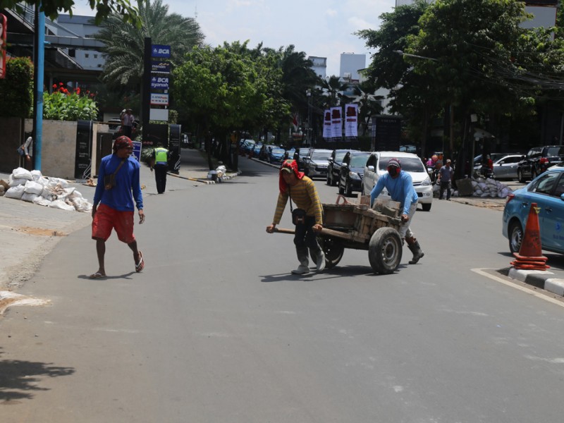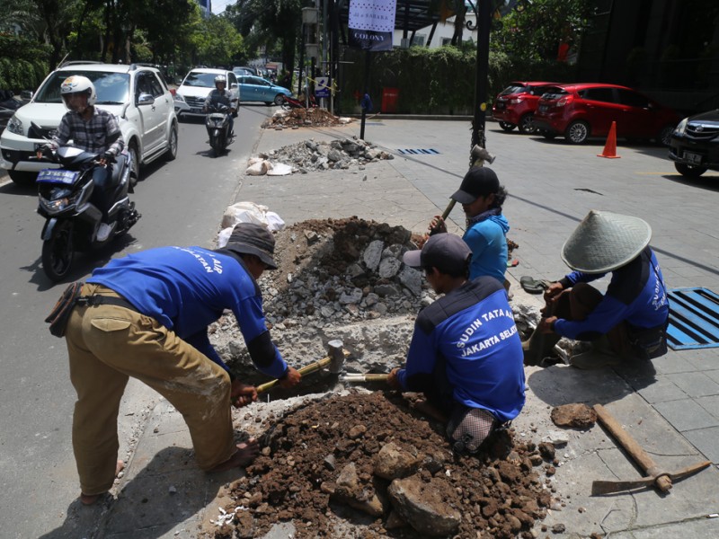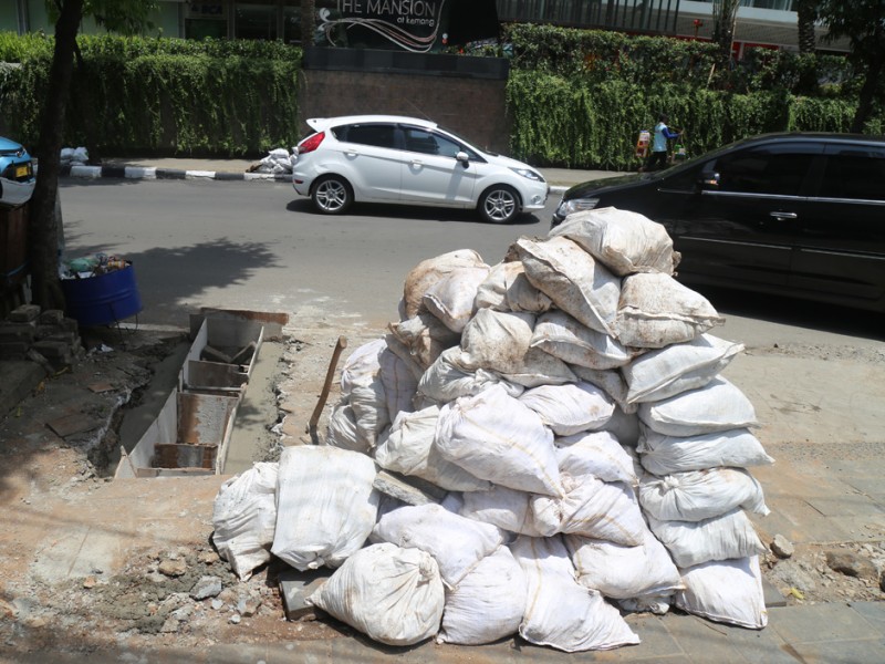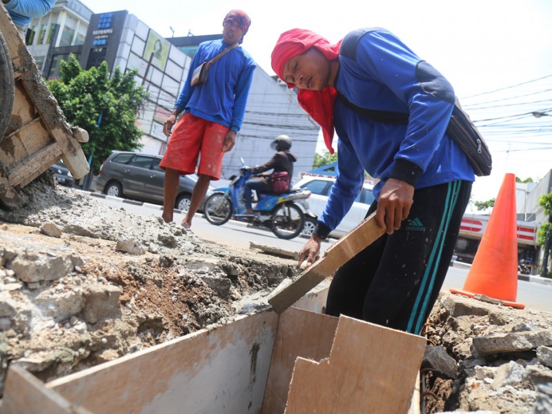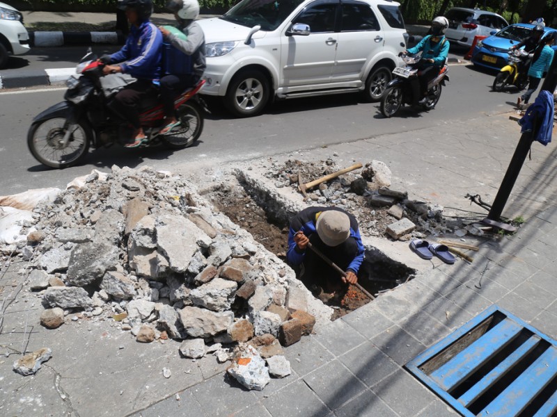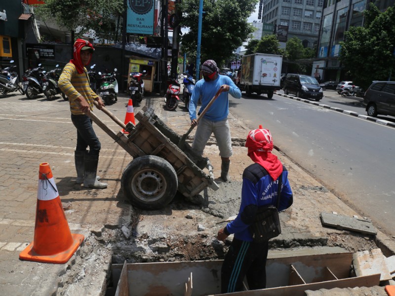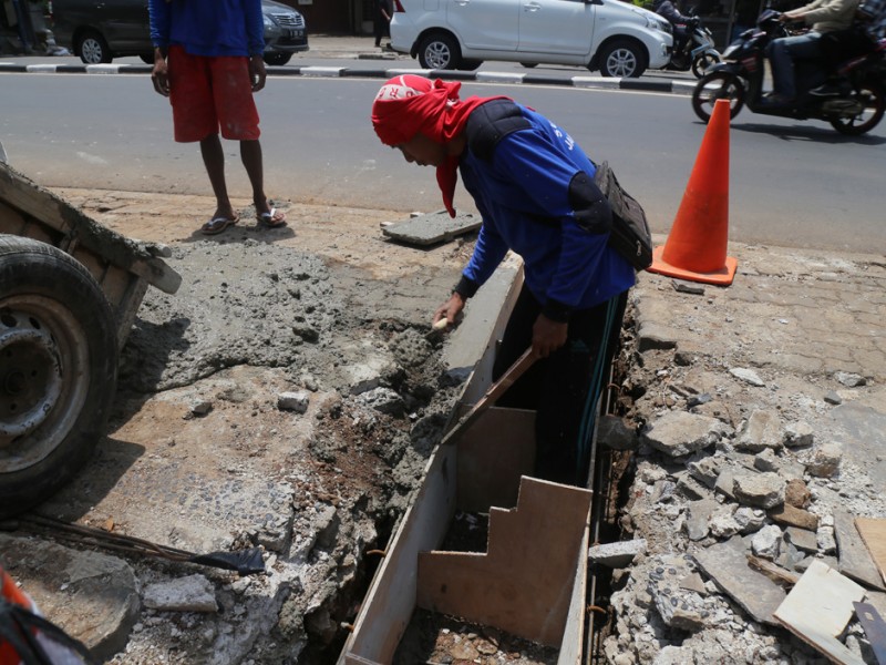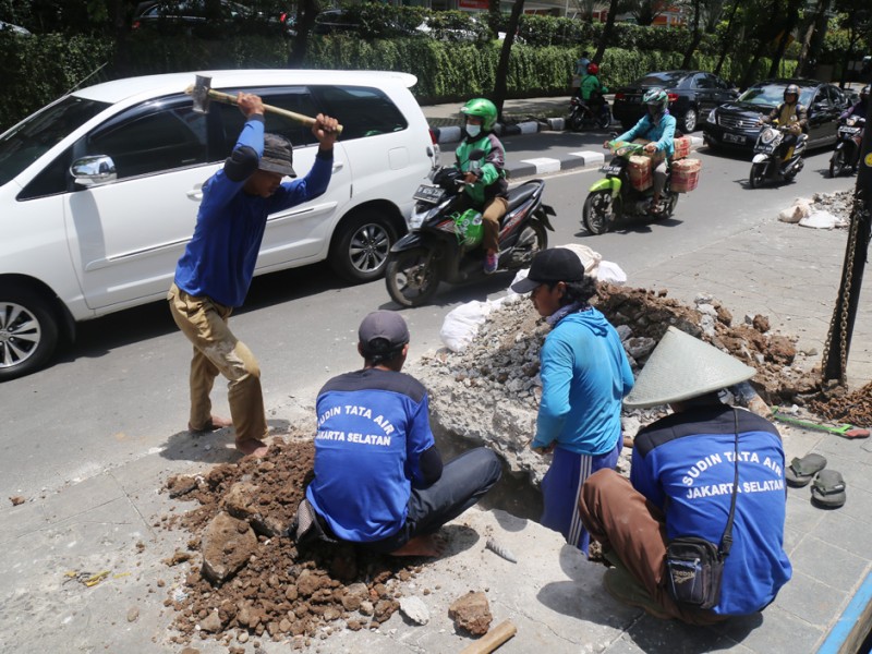 Suku Dinas Tata Air Jakarta Selatan melakukan perbaikan tali air di kawasan Kemang, Jakarta Selatan, Rabu (2/11). Perbaikan tali air ini merupakan salah satu upaya Suku Dinas Tata Air Jakarta Selatan untuk mencegah banjir di kawasan Kemang. (Foto: Reza/beritajakarta.com)