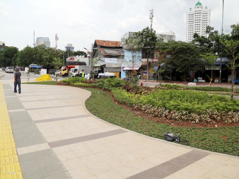Pemerintah Provinsi DKI Jakarta melalui Dinas Bina Marga terus berupaya menata trotoar dengan tingkat kenyamanan maksimal di Ibukota. Pantauan Beritajakarta Kamis (4/11/2016) Salah satu kawasan yang menjadi lokasi penataan yakni Kawasan Stasiun Tanah Abang dan Jalan Jatibaru, Jakarta Pusat. Trotoar di dua dikawasan ini sudah terlihat lebih lebar dengan konsep taman dan juga ramah disabilitas. (Foto: Yopie/beritajakarta.com)