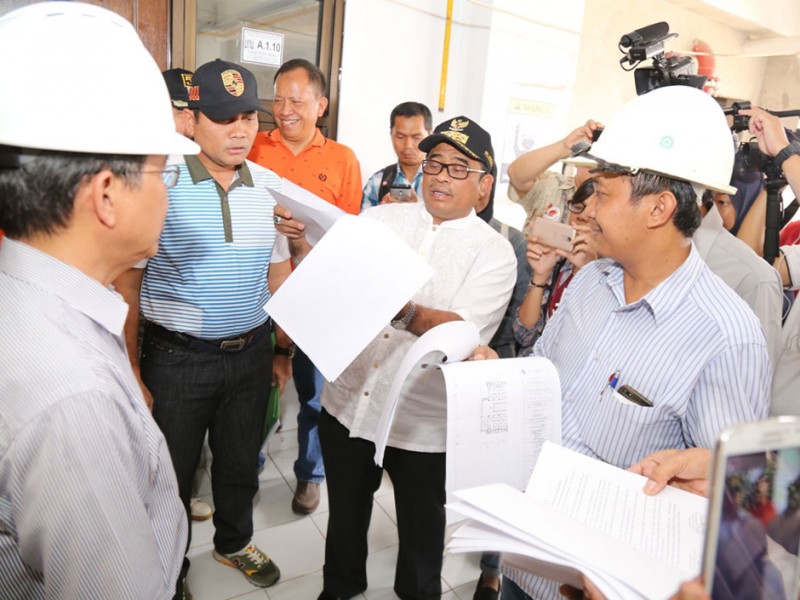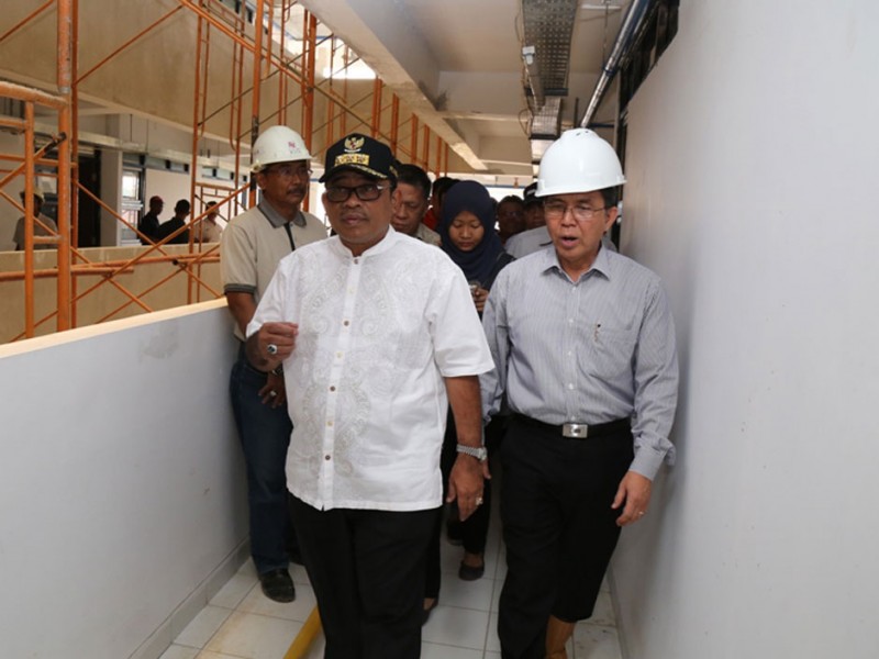 Pelaksana Tugas (Plt) Gubernur DKI Jakarta, Sumarsono meninjau pembangunan sejumlah rumah susun (Rusun) di sejumlah wilayah di Jakarta Timur dan Jakarta Utara. Sabtu (5/11). Sejumlah rusun tersebut tersebut yakni Rusun Rawa Bebek, Cakung, Jakarta Timur dan Rusun Marunda, Jakarta Utara. Diketahui pembangunan kedua rusun ini terhenti dikarenankan masalah tidak memenuhi keselamatan. (Foto: Yopie/Beritajakarta.com)