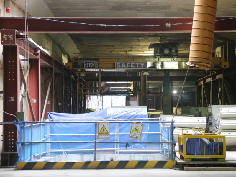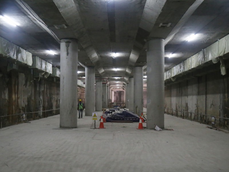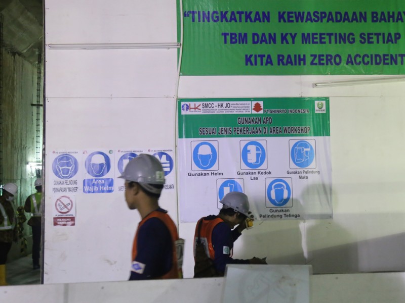 Pembangunan fasilitas Mass Rapid Transit (MRT) di kawasan Bundaharan Hotel Indonesia, Jakarta Pusat, sudah mencapai progres 58 persen, sejumlah pekerja tampak mempersikan diri untuk melanjutkan pembangunan fasilitas Kamis (17/11/2016). Pembanguan MRT ditargetkan rampung tahun 2019. (Foto: Reza/beritajakarta.com)