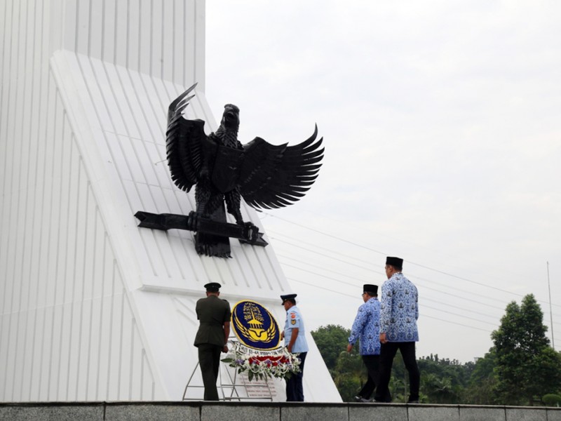 Dalam rangka Hari Ulang Tahun (HUT) Korpri ke-45, Korpri DKI Jakarta mengelar ziarah ke Taman Makam Pahlawan Nasional Kalibata, Jakarta Selatan, Rabu (23/11/2016). Ziarah ini dipimpin langsung Ketua II Dewan Pimpinan Korpri Nasional, Dwi Wahyu Atmaji dan dihadiri oleh Sekretaris Daerah (Sekda) Provinsi DKI Jakarta Saefullah bersama ribuan anggota Korpri. Melalui ziarah ini seluruh anggota Korpri diharapkan dapat menjalankan sumpah dan janji Korpri sebaik-baiknya, untuk melayani masyarakat, sesuai dengan fungsinya sebagai pelayan masyarakat. (Foto: Yopie/Beritajakarta.com)