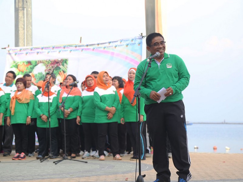 Pelaksana Tugas (Plt) Gubernur DKI Jakarta, Sumarsono menghadiri kegiatan memperingati Hari Kesehatan Nasional (HKN) ke-52 di Pantai Carnaval Ancol, Jakarta Utara, Sabtu (26/11/2016). Peringatan Hari Kesehatan Nasional (HKN) ke-52 mengangkat tema “Masyarakat Hidup Sehat Indonesia Kuat”. Dalam kesempatan tersebut Pemprov DKI Jakarta juga berkomitmen untuk menyosialisasikan Pola Hidup Bersih dan Sehat (PHBS) melalui media di moda transportasi massal bus Transjakarta dan bus sekolah.(Foto: Yopie/beritajakarta.com)