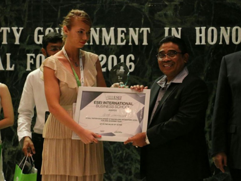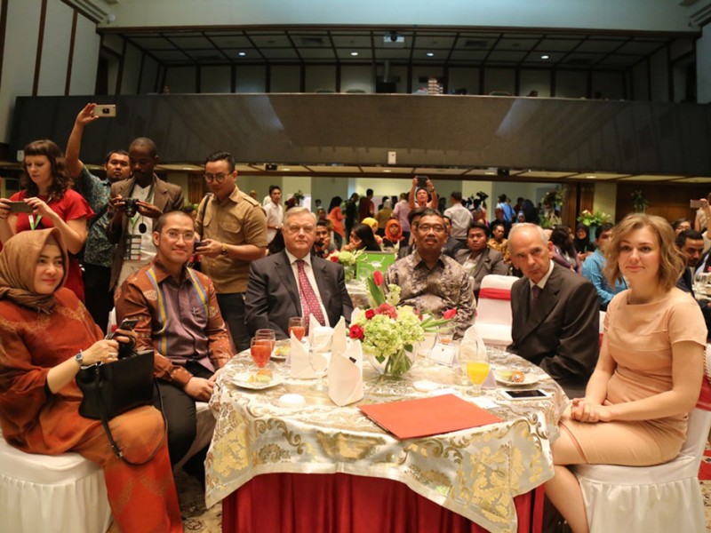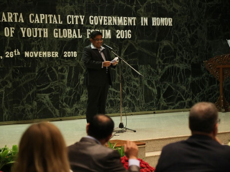 Sebanyak 7 orang peserta Youth Global Forum Tahun 2016 berhasil menjadi yang terbaik dalam kompetisi proposal proyek pembangunan berkelanjutan. Berhasil menjadi yang terbaik untuk peserta asal Indonesia yakni, Irvandias Sanjaya dan Sri Wahyu Ningsih. Sementara, untuk kelima peserta lainnya yang mendapatkan penghargaan yakni, Ajay Etikala (India), Anton Mironenko (Rusia), Nguyen Thuy Ngan (Vietnam), Naveen Chaudhary (India), Olga Lakhnova (Rusia). Penghargaan diantaranya diserahkan Pelaksana Tugas (Plt) Gubernur DKI Jakarta, Sumarsono di Balai Kota DKI Jakarta, Sabtu (26/11/2016) malam. (Foto: Yopie/Beritajakarta.com)