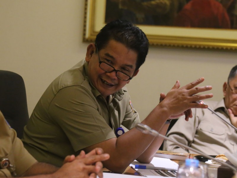 Pemprov DKI Jakarta menggelar rapat pengendalian pasokan kebutuhan pokok jelang Natal dan Tahun Baru bersama lima Badan Usaha Milik Daerah ( BUMD ) di Balaikota DKI Jakarta, Senin (28/11/2016). Rapat ini dipimpin langsung Pelaksana Tugas ( Plt ) Gubernur DKI Jakarta Sumarsono. Adapun ke- lima Badan Usaha Milik Daerah tersebut yakni PD Dharma Jaya, PD Pasar Jaya, PT Food Station Tjipinang Jaya, PD Perusahaan Air Minum ( PAM ) Jaya serta PD PAL Jaya. Selain pembahasan pengendalian pasokan kebutuhan pokok jelang Natal dan Tahun Baru dalam rapat ini juga dibahas kondisi keuangan dan keuntungan pertahun dari masing masing BUMD tersebut .(Foto: Reza/Beritajakarta.com)