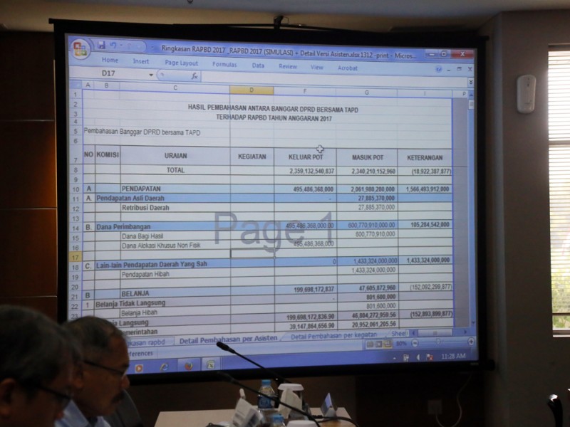 Badan Anggaran (Banggar) DPRD DKI Jakarta bersama Tim Anggaran Pemerintah Daerah (TAPD) Pemprov DKI Jakarta menggelar rapat pembahasan hasil rumusan Badan Anggaran (Banggar) bersama Tim Anggaran Pemerintah Daerah (TAPD) Provinsi DKI Jakarta terhadap Raperda APBD 2017 di Gedung DPRD DKI Jakarta, Selasa (13/12/). Dalam kesempatan ini TAPD Pemprov DKI memberikan pemaparan simulasi estimasi Sisa Lebih Pembiayaan Anggaran (SILPA). (Foto: Yopie/beritajakarta.com)