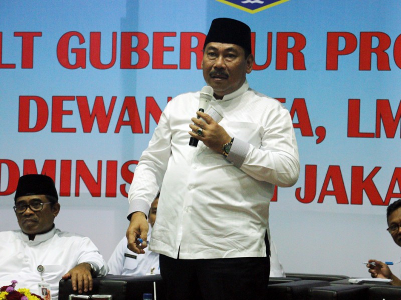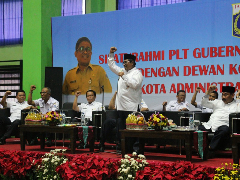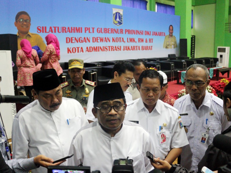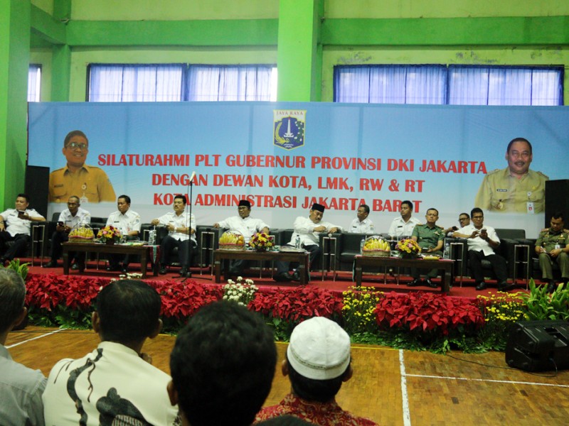 Pelaksana tugas (Plt) Gubernur DKI Jakarta Sumarsono kembali menggelar silaturahmi dengan tokoh masyarakat dan ketua RT/RW serta Dewan Kota dan Lembaga Musyawarah Kelurahan (LMK) se-Jakarta Barat di Gelanggang Olahraga (GOR) Tanjung Duren, Grogol Petamburan, Jakarta Barat, Rabu (14/12/2016). Pada kesempatan tersebut hadir Wali Kota Jakarta Barat Anas Effendi, Asisten Sekretaris Daerah Bidang Pemerintahan Bambang Sugiono, Kepala Dinas Kebersihan Isnawa Adji serta para Lurah dan Camat se-Jakarta Barat. Kegiatan ini dimanfaatkan oleh warga untuk berdialog dengan Plt Gubernur dan walikota terkait permasalahan lingkungan layanan publik hingga tunjangan RT/RW. (Foto: Yopie/beritajakarta.com)