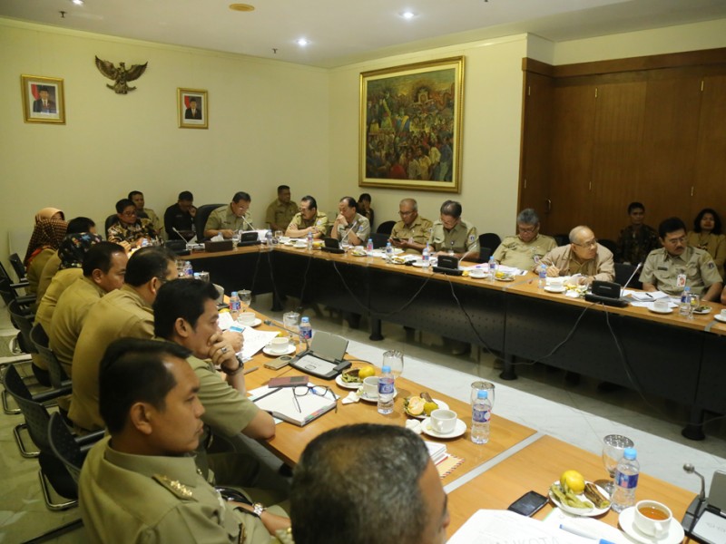 Pemprov DKI Jakarta menggelar rapat bersama Satuan Kerja Perangkat Daerah (SKPD) terkait peresmian Terminal Pulogebang dan progres pembanguan Jalan Layang Non Tol Cileduk-Tendean untuk Transjakarta di Balai Kota DKI Jakarta Senin (19/12/2016). (Foto: Yopie/beritajakarta.com)