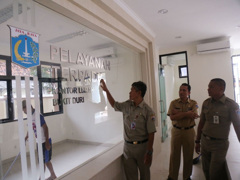Tim monitoring dan evaluasi (Monev) pembangunan dan pemerintahan Provinsi DKI Jakarta menggelar monitoring dan evaluasi realisasi anggaran pembangunan kantor Lurah Bukit Duri, kecamatan Tebet Jakarta Selatan, Senin (19/12). Dalam peninjauan ini Kepala Subdit Pemerintahan Bappeda DKI Jakarta, Dicky Hardianto mengatakan perbaikan kantor Lurah Bukit Duri sudah sesuai dengan spesifikasi. (Foto: Reza/Beritajakarta.com)