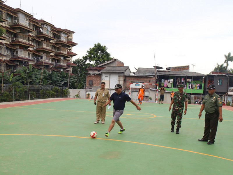 Sebanyak 10 tim futsal dari Unit Kerja Perangkat Daerah (UKPD) dan Pekerja Harian Lepas se-Kecamatan Tebet mengikuti turnamen futsal di RPTRA Teratai Kelurahan Tebet Timur, Kecamatan Tebet, Jakarta Selatan, Senin (19/12). Turnamen ini dilaksanakan dua hari yakni 19-20 Desember 2016. (Foto: Reza/Beritajakarta)