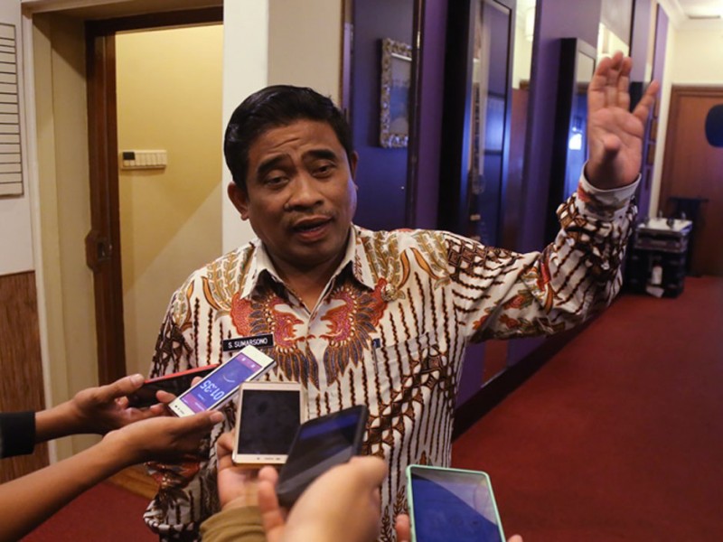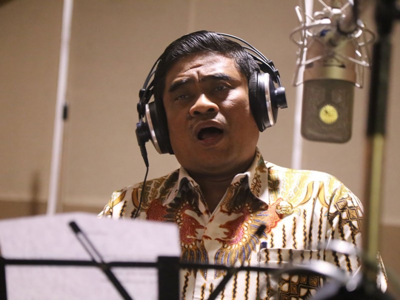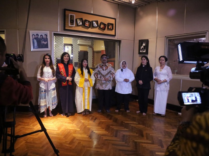 Pelaksana Tugas (Plt) Gubernur DKI Jakarta, Sumarsono mengikuti rekaman suara dan pembuatan klip video `Indonesia Pusaka` bersama paduan suara Alumni Sabda Sekolah Agama-Agama dan Bina Damai FKUB Provinsi DKI Jakarta di Musica Studio, Jalan Raya Pasar Minggu, Jakarta Selatan, Selasa (20/12). (Foto: Yopie/Beritajakarta.com)