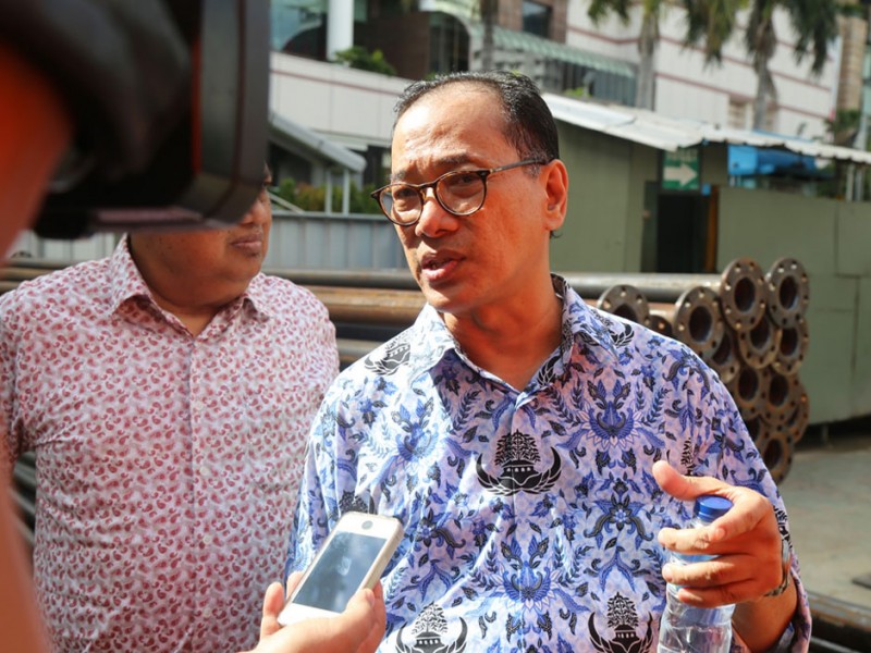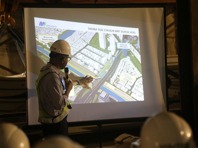 Deputi Gubernur Bidang Industri, Perdagangan dan Transportasi DKI Jakarta, Sutanto Soehodho meninjau proyek pembangunan Mass Rapid Transit (MRT) di Paket 106 Bundaran Hotel Indonesia, Jakarta Pusat, Kamis (22/12). Peninjauan ini dipandu langsung Direktur Utama (Dirut) PT MRT Jakarta, William Sabandar. (Foto: Yopie/Beritajakarta.com)