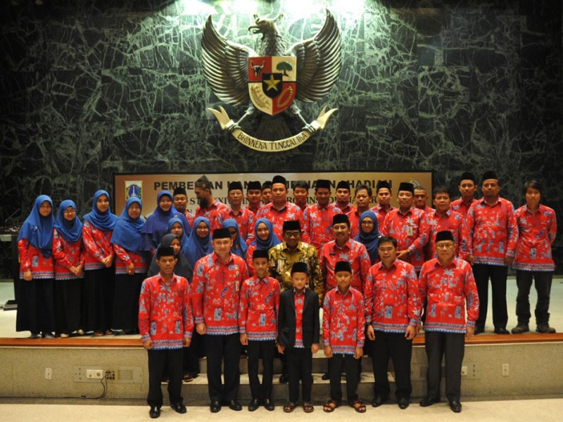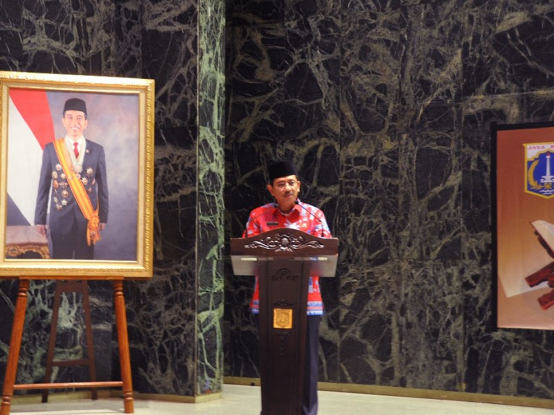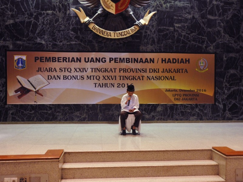 Pemerintah Provinsi DKI Jakarta memberikan uang pembinaan/hadiah kepada para peserta Kafilah Musabaqah Tilawatil Quran (MTQ) XXVI Tingkat Nasional Tahun 2016. Pemberian bonus ini dilakukan langsung Pelaksana Tugas (Plt) Gubernur DKI Jakarta, Sumarsono di Balai Kota Jakarta, Jumat (23/12). (Foto: Yopie/Beritajakarta.com | Hasa n/Humas)